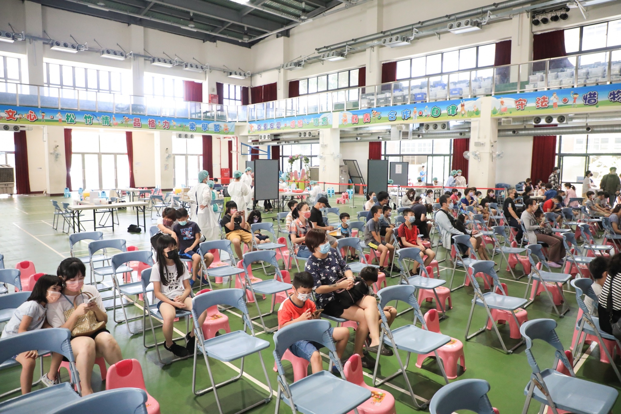 盧市長提醒,小朋友防護力相對不夠,這次快打站開放家長陪同,為小朋友的安全,家長須出示施打三劑的證明,如小黃卡、手機顯示等,若沒打三劑證明,家長不得入內,但現場有已打三劑的教職、醫護、志工、家長會暫代爸媽陪同,不用擔心。