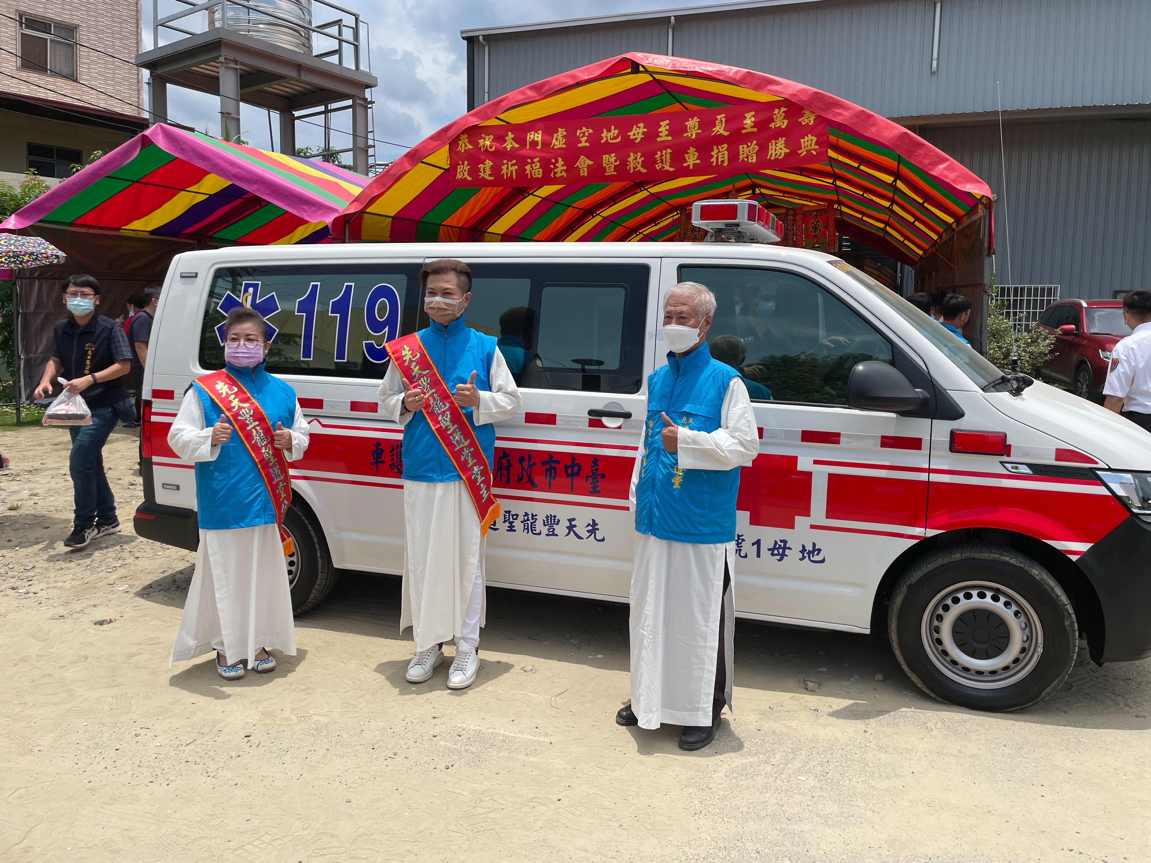 烏日先天豐龍聖道堂感謝台中市政府消防局同仁的辛勞及冒險犯難精神,捐贈救護車以表對消防局的支持與肯定,今(18)日於台中市烏日先天豐龍聖道堂舉行捐贈典禮,由消防局長曾進財代表受贈,該車輛將撥交台中市消防局第四救災救護大隊清泉分隊作為緊急救護勤務使用,大大提升清泉分隊轄內民眾救護服務品質需求,保護民眾生命及安全。