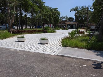 此外,為提供遊客入口廣場迎賓氛圍,觀旅局去年也將雕塑公園前方停車空間改造為綠化景觀迎賓廊道,生態工法並採取透水鋪面,種植多種綠色植物,如苦楝、馬蹄金及過江藤等,透過景觀綠化增加停車的舒適感,也藉由空間改造讓舊地重遊及初次探訪遊客都能體驗鐵砧山特有的美好風情。