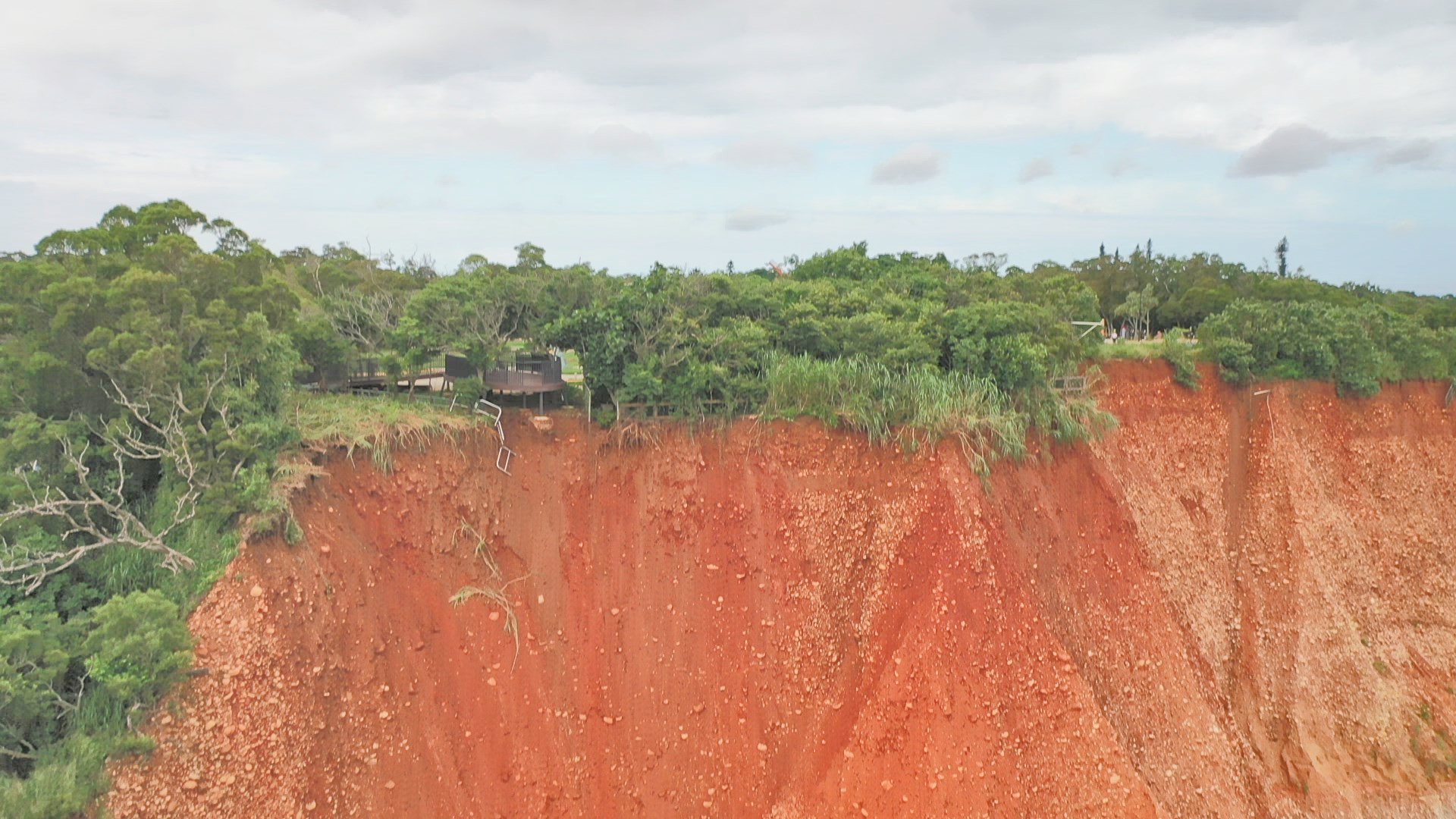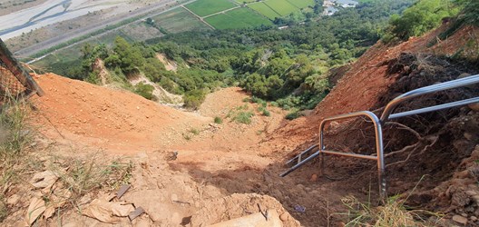 去年颱風外圍環流帶來連日大豪雨,造成台中市大甲鐵砧山雕塑公園東北側邊坡崩塌,台中市政府觀旅局為維護遊客安全,緊急以災害準備金辦理「大甲鐵砧山雕塑公園災害復建工程」,目前已完成新建擋土牆及預力地錨固定,邊坡保護工程預計今年9月完工,完工後可增強邊坡抗滑能力,再現鐵砧山整體風貌。