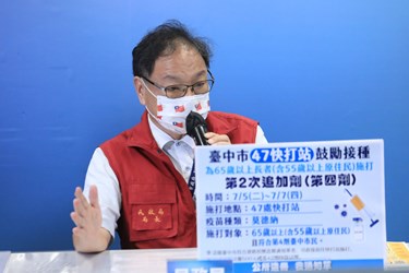 盧市長指出,台中市持續進行65歲以上長者第4劑COVID-19疫苗及5至11歲第2劑兒童疫苗接種,目前施打率均是六都第一。截至昨日為止,台中市已有14萬5,401位長者完成第4劑疫苗接種,涵蓋率35.33%。為了進一步推進涵蓋率,市府下禮拜二開始連三天7月5日至7月7日,再加開47站疫苗快打站,提供65歲以上長者、55歲以上原住民接種莫德納疫苗。