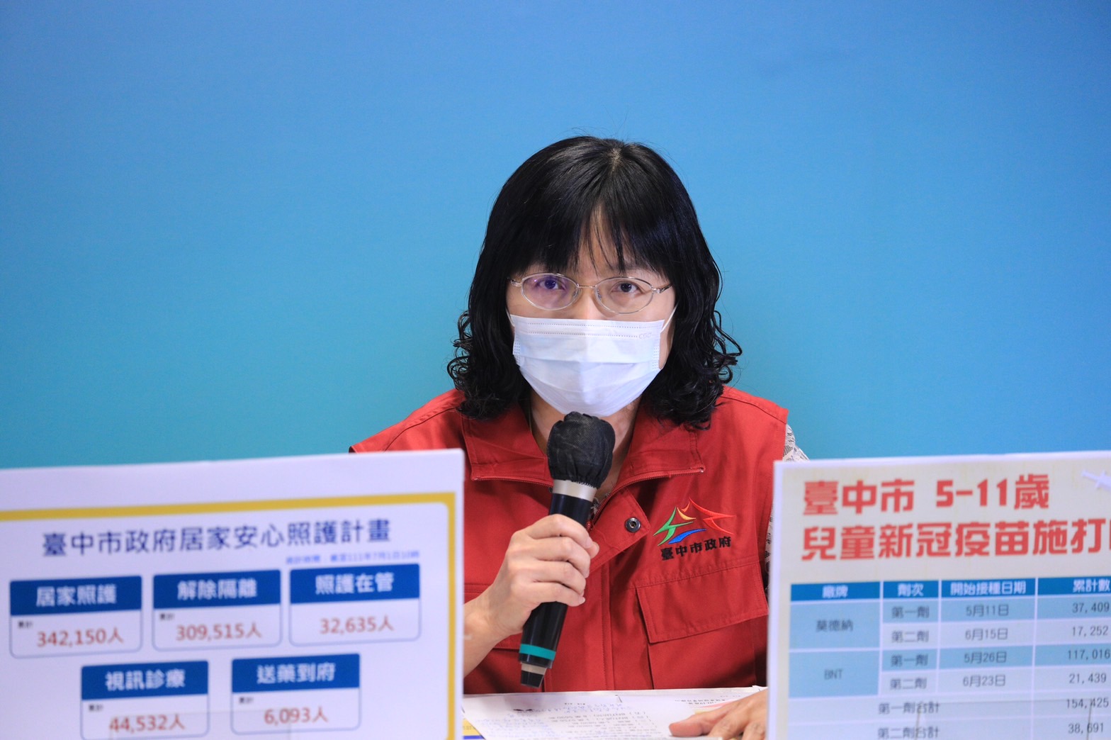 有關疫苗施打情形,陳副市長說,兒童疫苗統計至昨日止,5至11歲兒童疫苗施第一劑共施打15萬4425人,第一劑疫苗涵蓋率79.6%;第二劑共施打3萬8691人,第二劑疫苗涵蓋率19.94%。兒童BNT疫苗方面台中市目前採取醫療院所預約施打、校園集中接種、假日校園快打站三管齊下,明日是第三波校園快打站,總共開設8站,目前有意願人數3204人。感謝學校團隊犧牲暑假時間,以及教育志工團隊、教育局、衛生局、警察局、消防局同仁通力合作,市府會將快打站相關規劃及服務做好,也希望家長配合工作人員、醫護引導,完成施打作業。