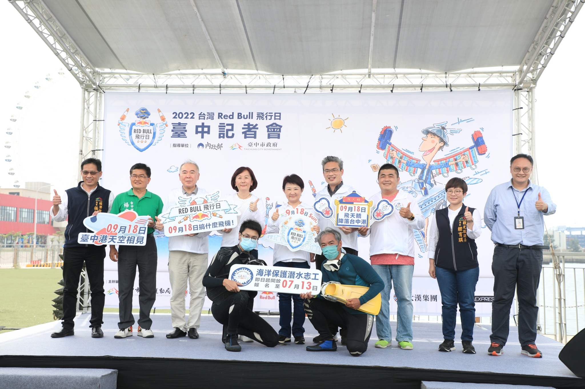 2022年亞洲唯一場、台灣首屆Red Bull飛行日即將在台中隆重登場!這項號稱地表最熱血、最狂的創意飛行器大賽,今(1)日舉辦記者會,市長盧秀燕現身力挺,她表示,台灣Red Bull飛行日9月18日台中正式起飛,盼藉此讓全國民眾體驗台中酷運動、酷城市的活力與熱情,打造獨一無二的飛行體驗,近距離接觸最潮的賽事,感受台中幸福的運動生活,也將城市行銷推向國際舞台。