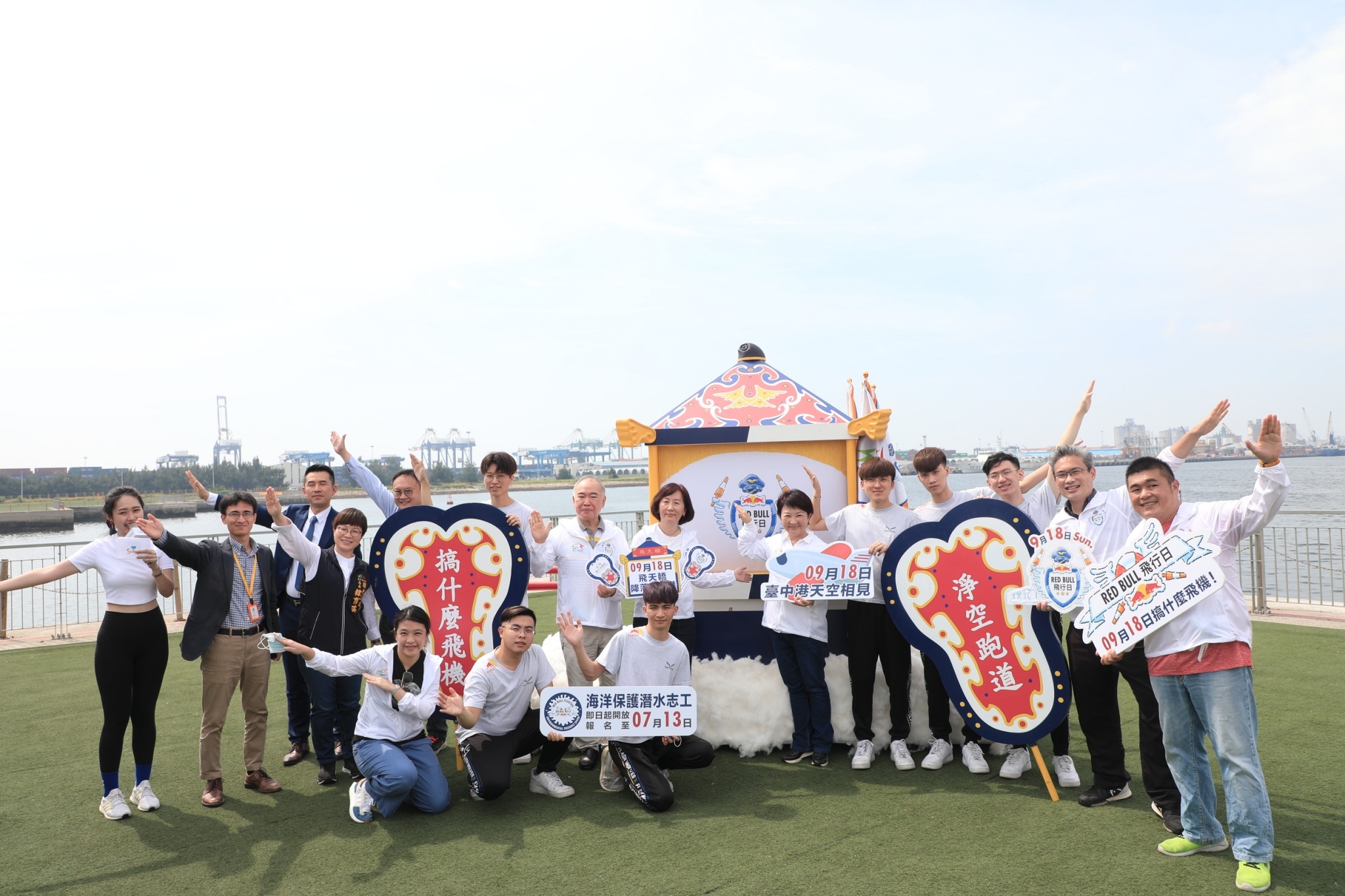 運動局指出,為迎接台灣首場飛行日降臨台中市,主辦單位特別打造具台灣廟宇特色的官方飛行器,並將這全台首座飛行器命名為「飛天轎」。由於這項無動力飛行器大賽須透過人力來推動,最後滑翔降落且漂浮在海面上,為求海洋保護及永續發展,主辦單位特別與台灣直立板運動協會合作,規劃「海洋保護潛水志工」招募活動,即日起開始號召全台喜愛潛水的民眾加入這個行列,一起守護台灣珍貴的海洋資源!