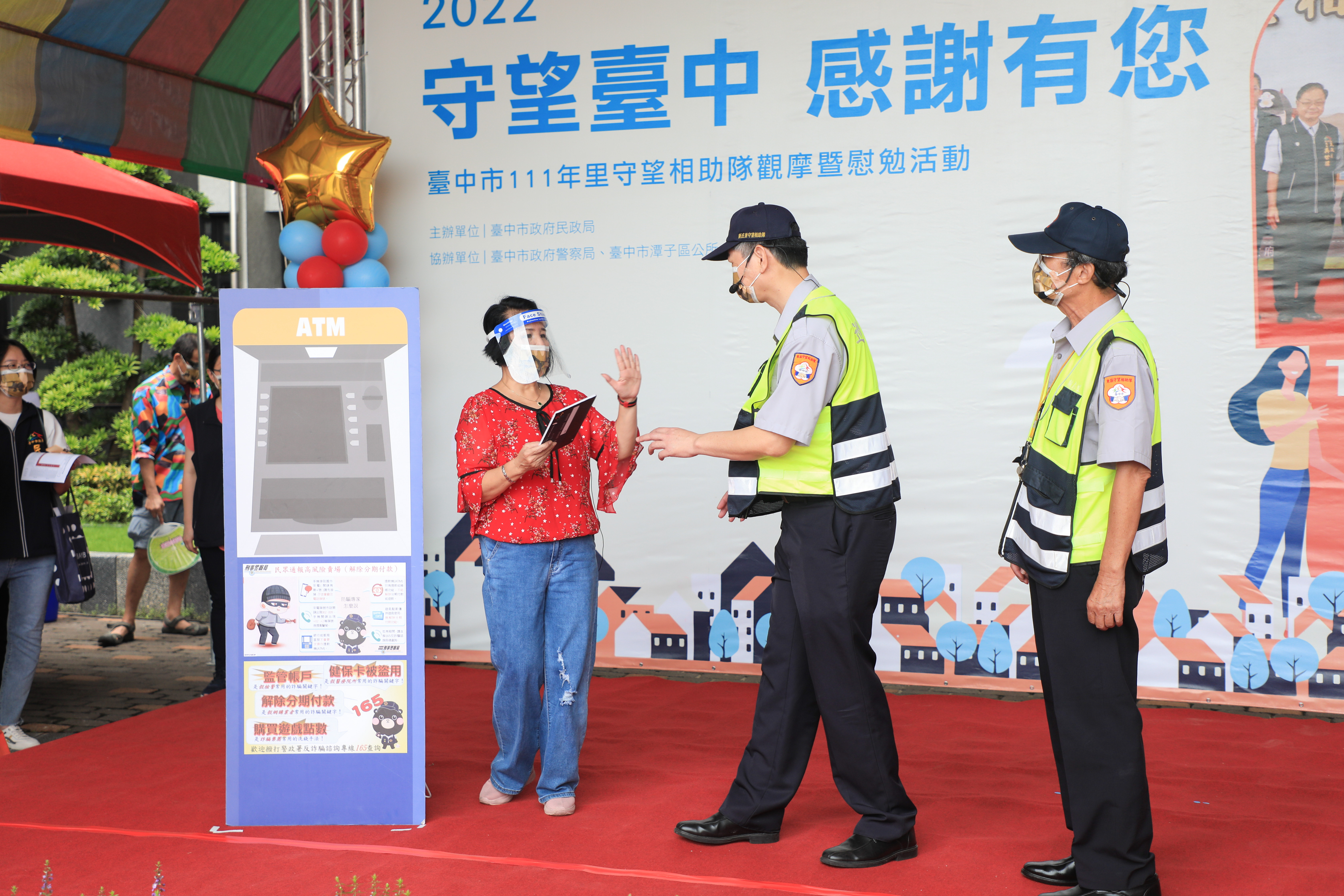 今日活動開場由警察局第三分局率領東區振興里、新庄里守望相助隊及南區崇倫里、西川里守望相助隊帶來模擬情境劇的演出,為各里守望相助隊員演示巡勤遇竊盜、詐騙情境時,與警方協力合作的處遇方式,充分展現警民合作守護家園的決心。包括市議員陳成添、陳本添、陳政顯、徐瑄灃、蕭隆澤、周永鴻、吳瓊華、沈佑蓮、曾朝榮等人皆出席,立委楊瓊瓔服務處代表及市議員冉齡軒、鄭功進、吳顯森、張家銨、黃健豪、朱暖英、陳文政服務處代表也到場關心。(7/2*7)*民政局
