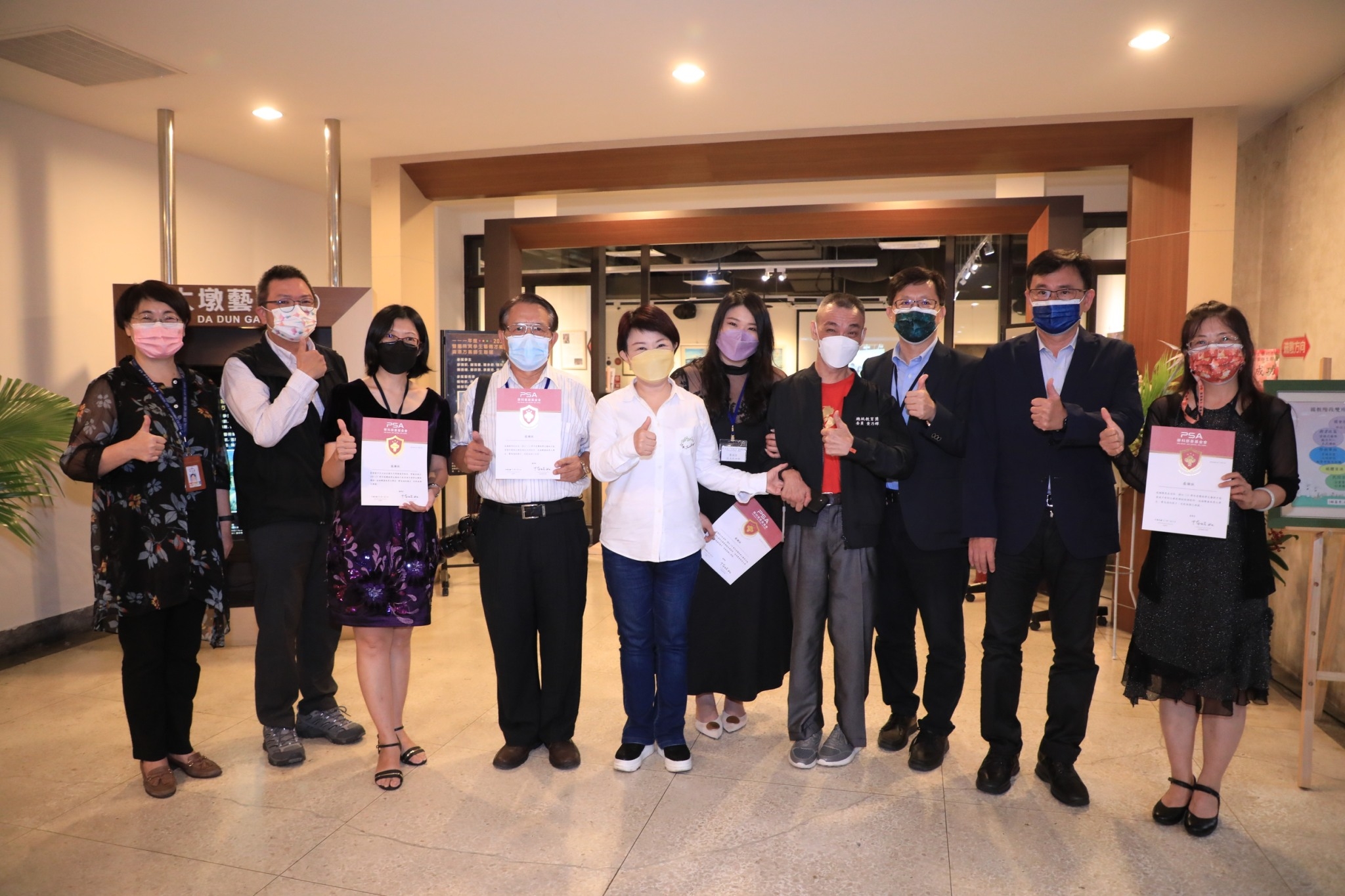 今日聯展開幕式,盧市長、文化局長陳佳君、策展人賴盈秀老師、立委張廖萬堅、黃國書、大里區長鄭正忠、大墩文化中心主任陳文進、華科基金會代表王榮廉、市政顧問黃乃輝、王永源等人皆出席,立委何欣純服務處代表、市議員林德宇服務處代表及林祈烽服務處代表也到場。(7/2*7)*文化局