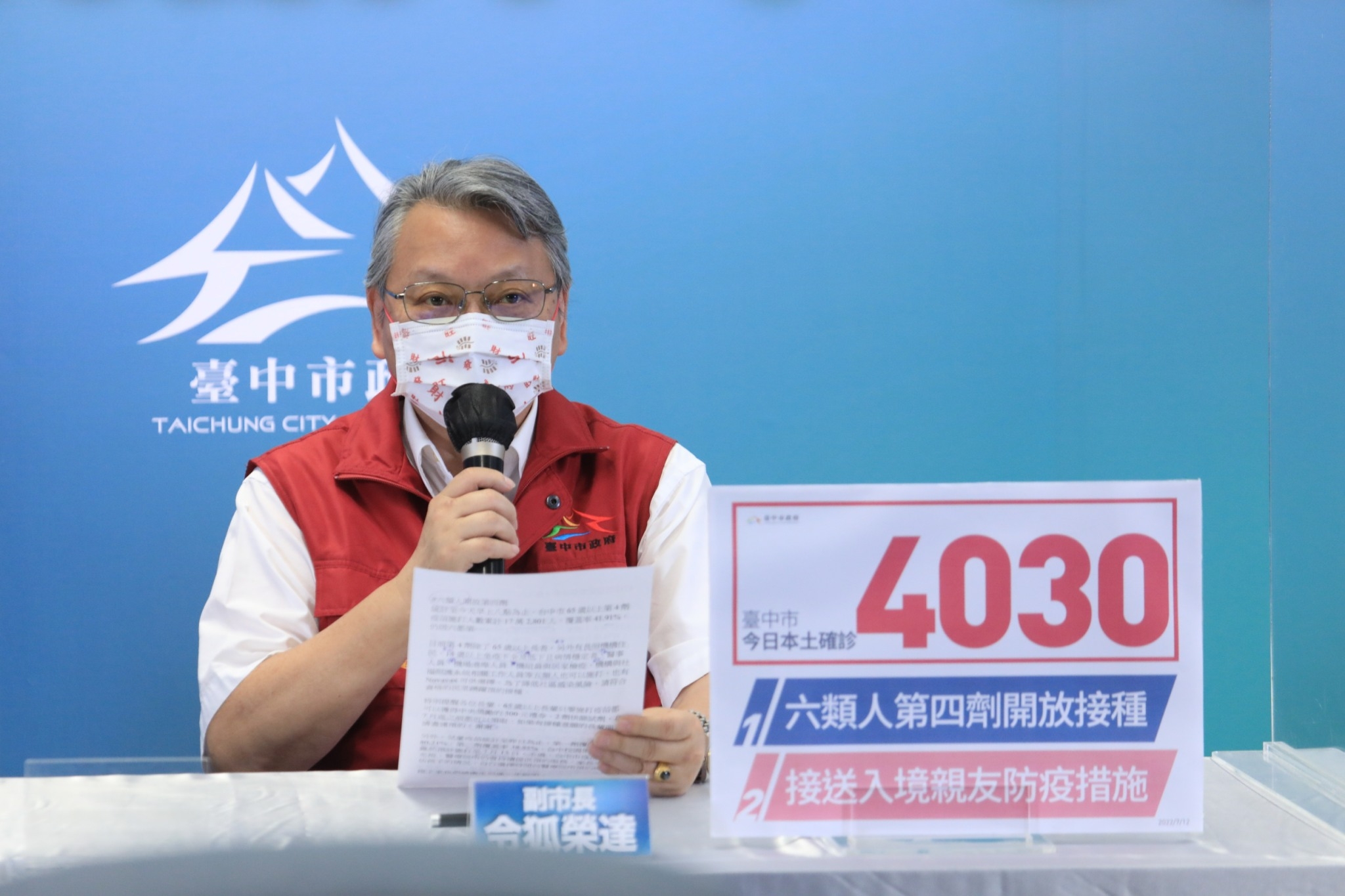 令狐副市長指出,統計至今早8時止,台中市65歲以上第4劑疫苗施打人數累計172,801人,覆蓋率41.91%,仍居六都第一。目前第4劑除65歲以上長者,另五類高風險族群包括長照機構住民、18歲以上免疫不全及低下且病情穩定者、醫事人員、機場港埠人員、機組員與居家檢疫、機構與社福照護系統相關工作人員也可施打,也有Novavax疫苗可選擇,為降低社區感染風險,請符合資格的民眾踴躍預約接種。