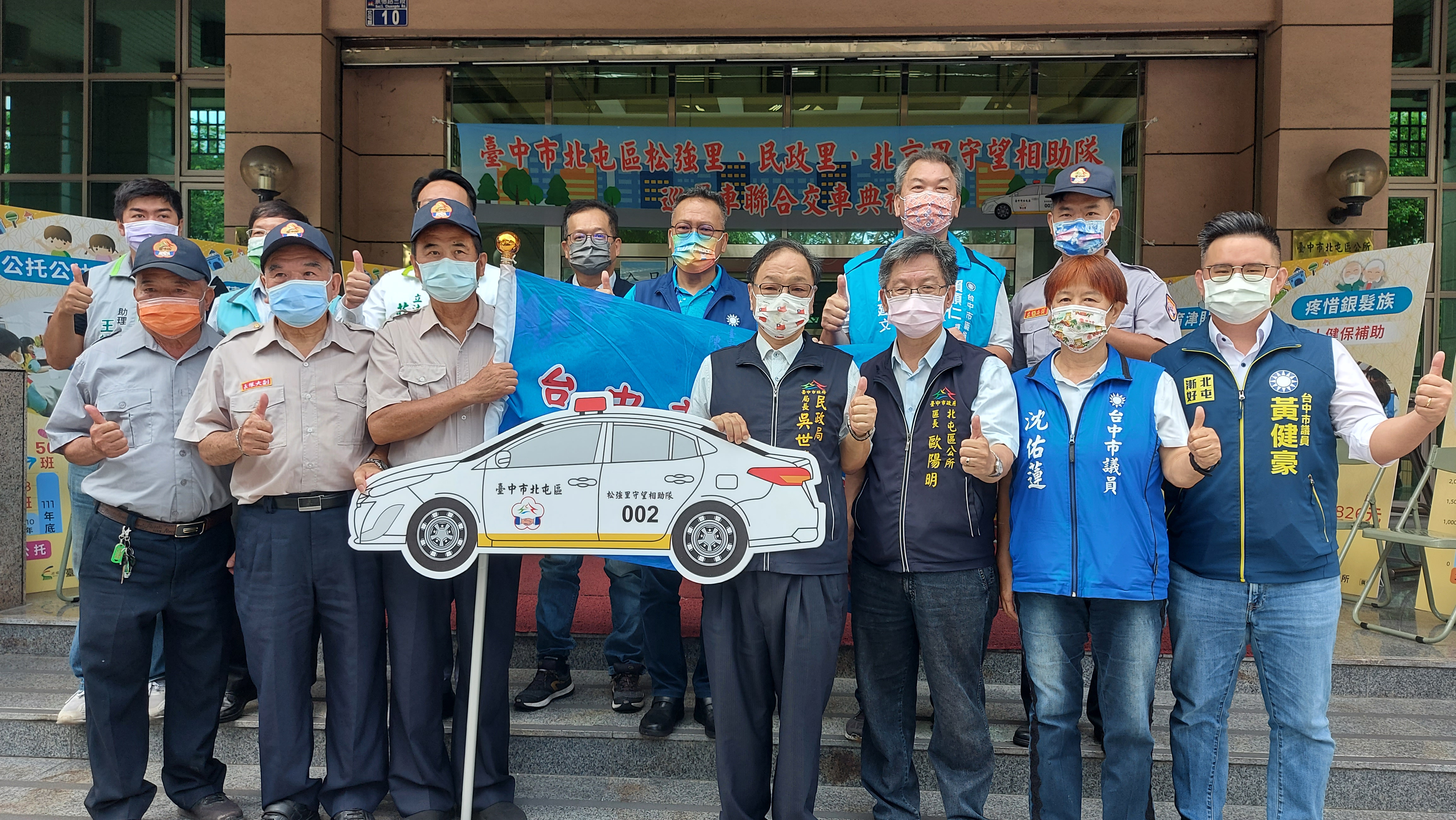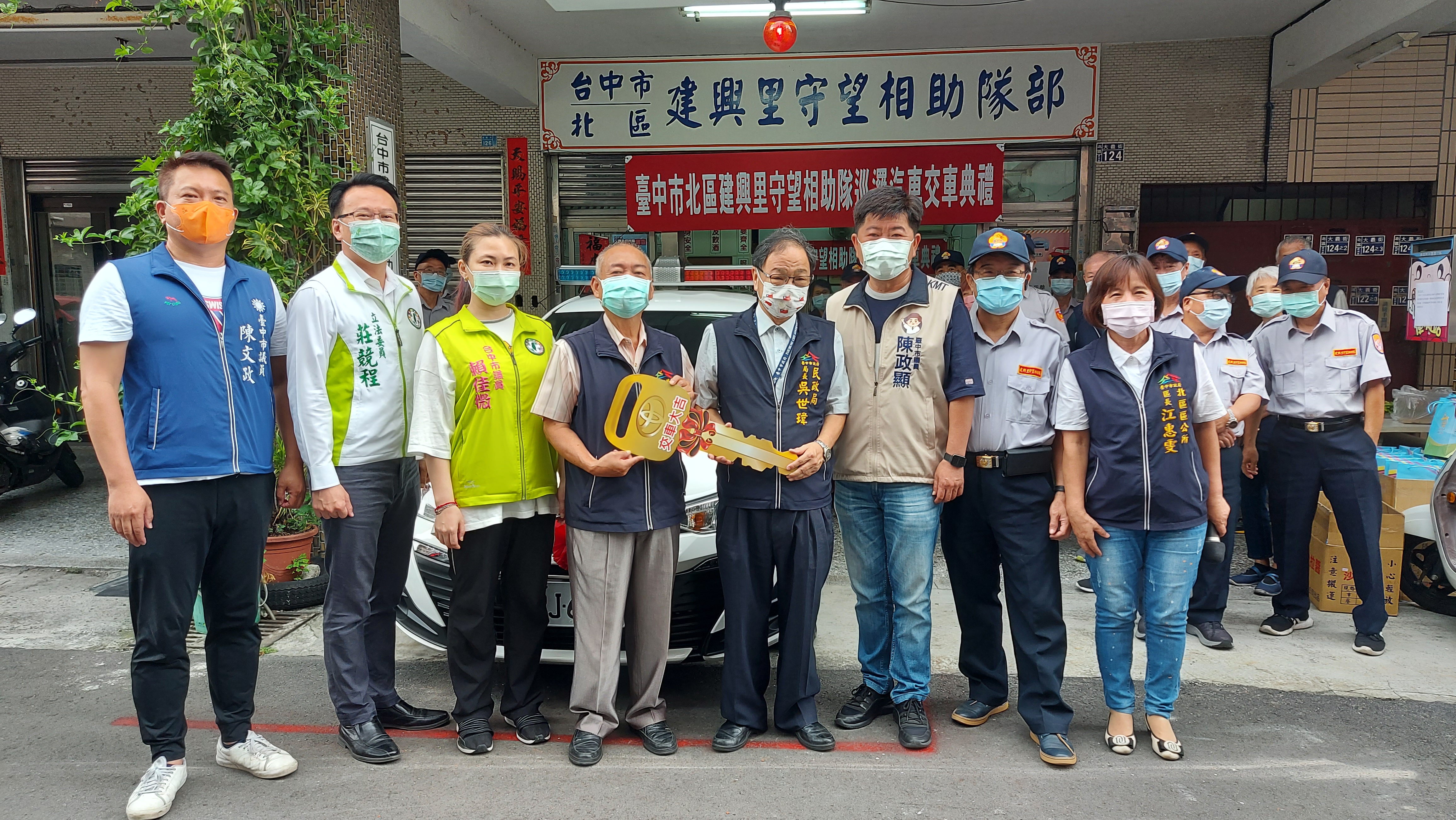 台中市政府民政局為提升北區及北屯區社區巡邏安全與機動性,補助北區建興里、北屯區松強里、民政里及北京里守望相助隊新購巡邏汽車各1輛,補助北京里新購巡邏機車1部,今(14)日分別於北區建興里活動中心及北屯區公所前廣場舉行巡邏汽(機)車交車典禮,民政局長吳世瑋代表市長盧秀燕主持交車儀式,感謝隊員無私奉獻,讓全市交通順暢、治安平穩。