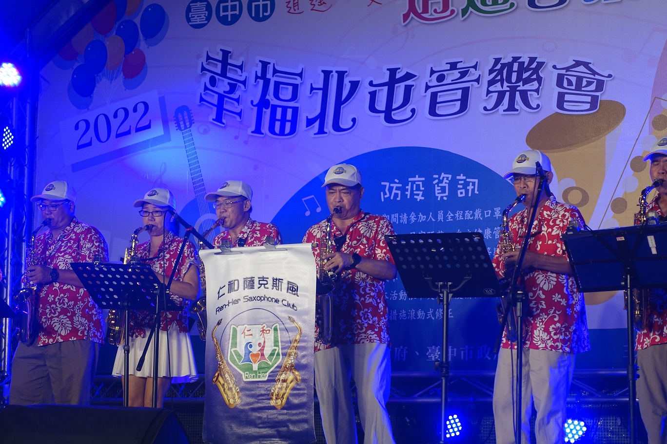 台中市北屯區公所今(16)日在新平公園舉辦「2022台中市逍遙音樂町-逍遙一夏幸福北屯」音樂會,邀請同榮、仁和薩克斯風樂團、賴小不爵士鼓、新平木箱鼓隊、街頭藝人道道、台灣陶笛隊及超人氣紅人榜小小歌王袁皓維帶來多首精彩曲目,讓現場民眾享受歡樂溫馨的音樂之夜。民政局長吳世瑋出席表示,疫情逐漸平緩,民眾因此能逐漸恢復正常生活,感謝大家努力配合防疫,市府也會持續規劃具地方特色的藝文活動,讓民眾可就近欣賞更多優質表演。