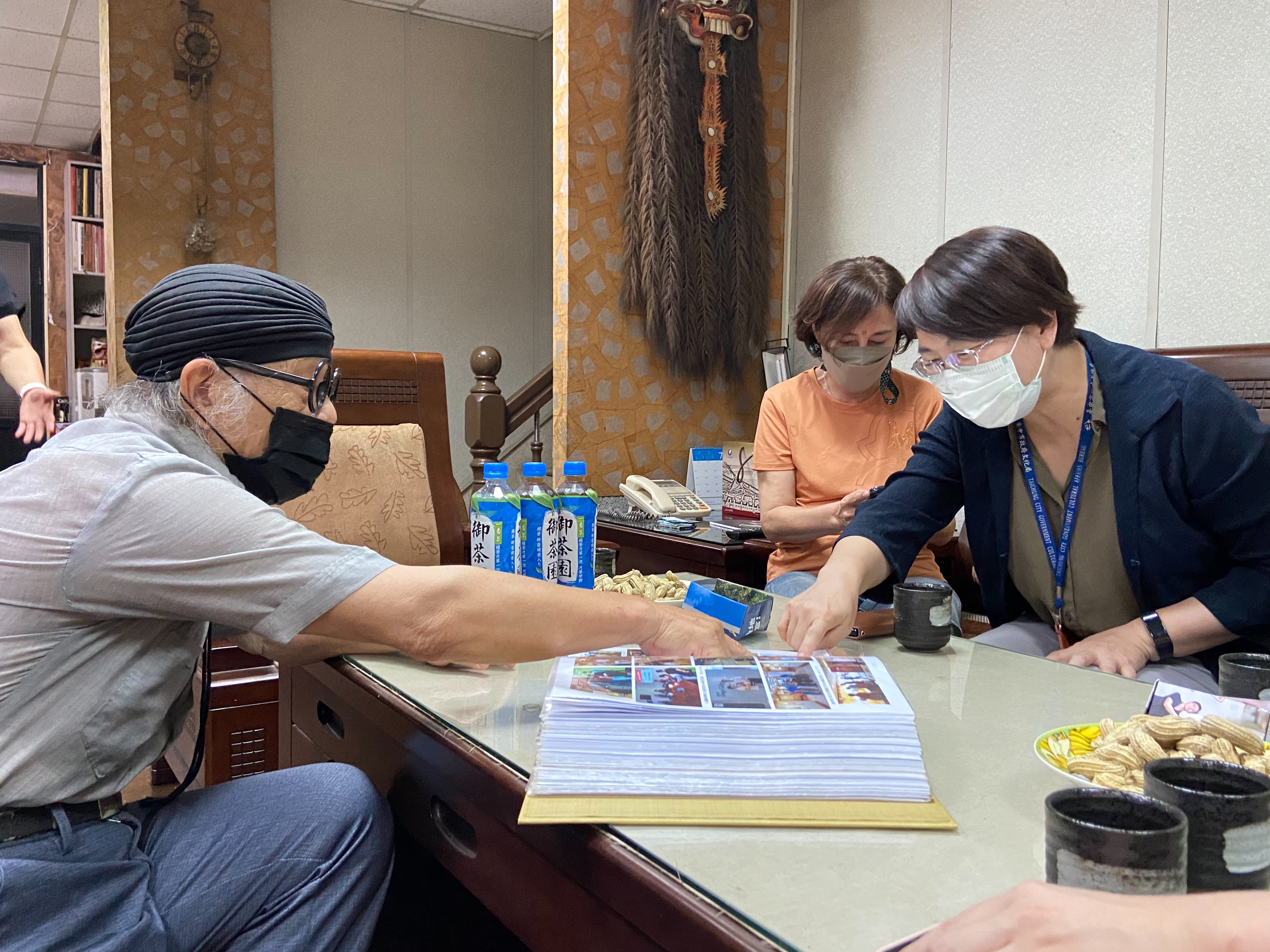 楊大師對陳局長與曾副局長今日到訪相當欣喜,市議員黃馨慧也共襄盛舉。他熱情介紹他豐富的藝術藏書及歷年珍貴的設計原稿,更特別準備一套《台灣百年暨百人視覺設計套書》限定版回贈予盧市長,感謝市府對文化政策的用心。楊大師說,為與中市圖共同推動設計藝術文化,後續將再捐贈藝術圖書,期盼透過公共圖書館的力量,共同推廣創意設計圖書的閱讀。