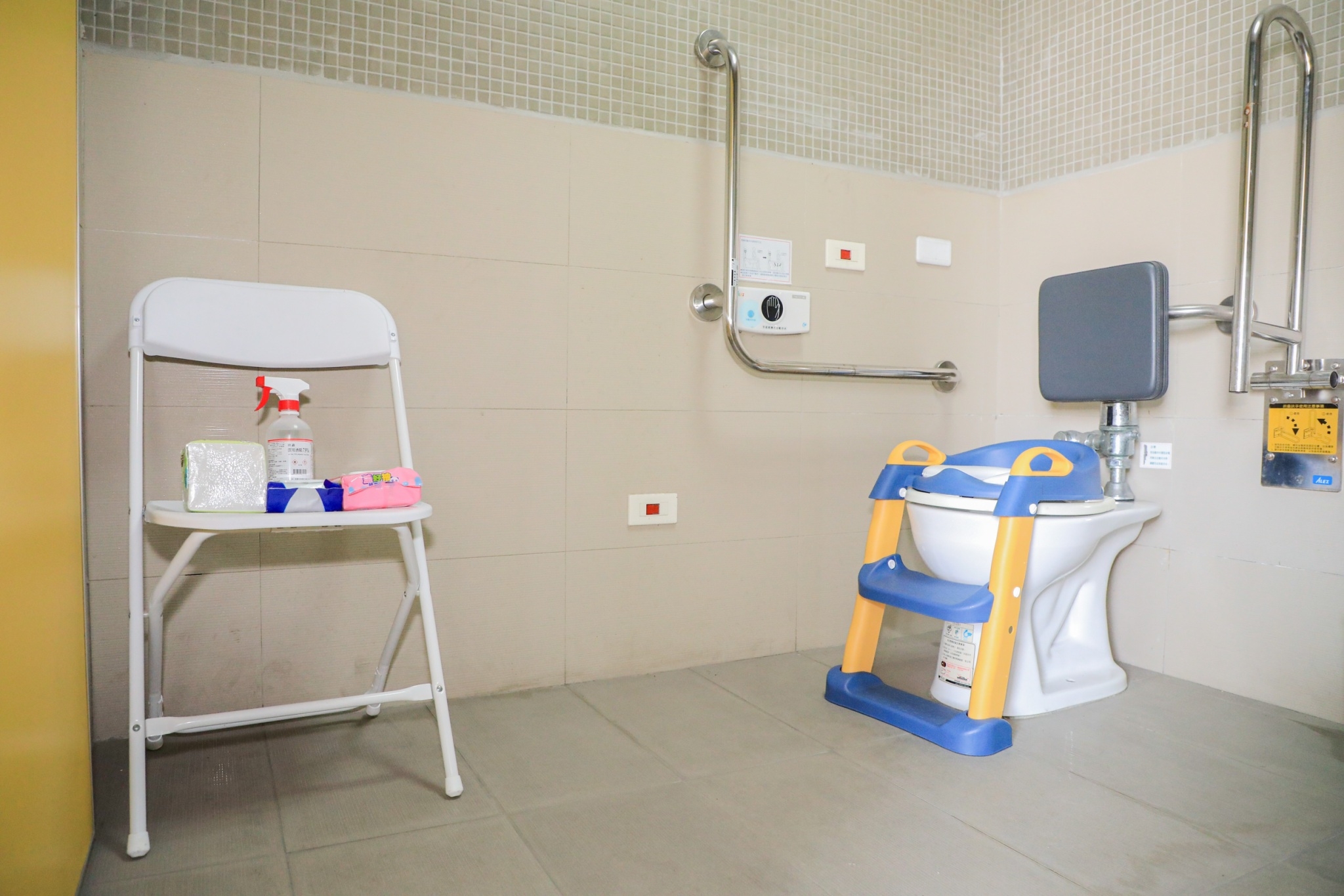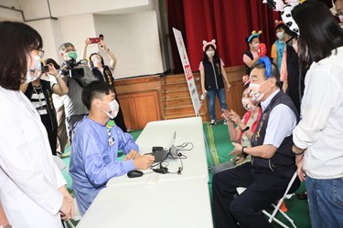 此外,各項友善親子措施多元,包括便於嬰兒車行進的無障礙坡道,妥善配置臨時性哺乳室、尿布台、飲水機(或熱水瓶)、濕紙巾及尿布墊等,現場也會播放經授權的卡通或音樂,還有提供可愛貼紙等小禮物,安撫幼童接種時的緊張情緒。黃副市長也上陣模擬寶寶換尿布的過程,場面趣味橫生,每項流程、配套措施及動線皆很貼心,讓黃副市長大呼感動。