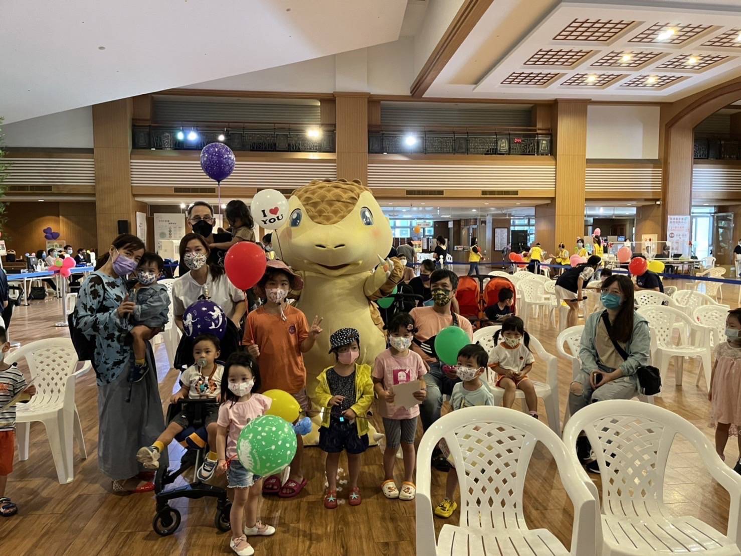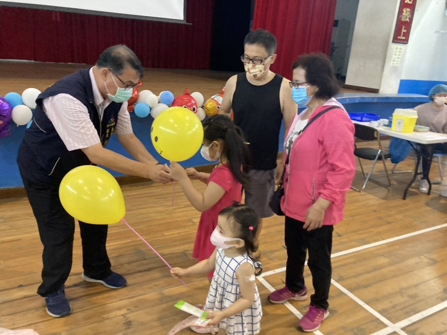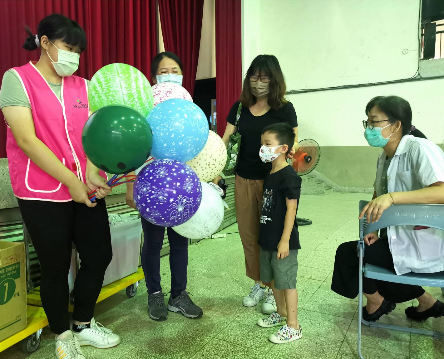 市府表示,台中市快打站除替孩子施打疫苗外,更因親子族群的屬性特殊,市長盧秀燕特別指示,優化空間氛圍,此舉成功安撫現場的緊張感,比如南屯區慈濟台中靜思堂的快打站,有「穿山甲」吉祥物到場帶動歡樂氣氛,發送七彩氣球,孩子們跑去抱著吉祥物,家長忙著拍照,瞬間變打卡見面會。其他各站也有「哄嬰法寶」,部分醫護、工作人員施打疫苗時,請孩子挑選小禮物,包含糖果、貼紙、小玩具、七彩氣球等,成功轉移注意力,讓哭聲變笑聲,加上卡通、音樂的播放,施打站變身「遊樂園」。
