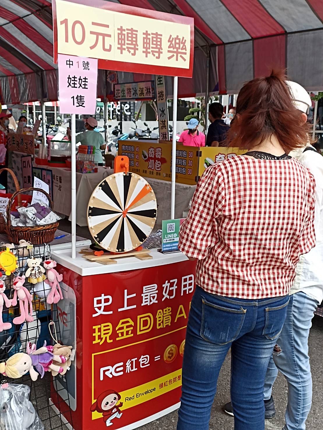 大里商圈主委康惠祈表示,今日的活動安排文創市集,當日販售百元市集券,除可抵110元消費外,再送一張摸彩券,買越多送越多抽獎券,大里中興商圈特別邀請商圈特色店家前來擺攤,現場也提供免費遊樂設施,讓來參加市集的大人小孩都開開心心、滿載而歸回家。