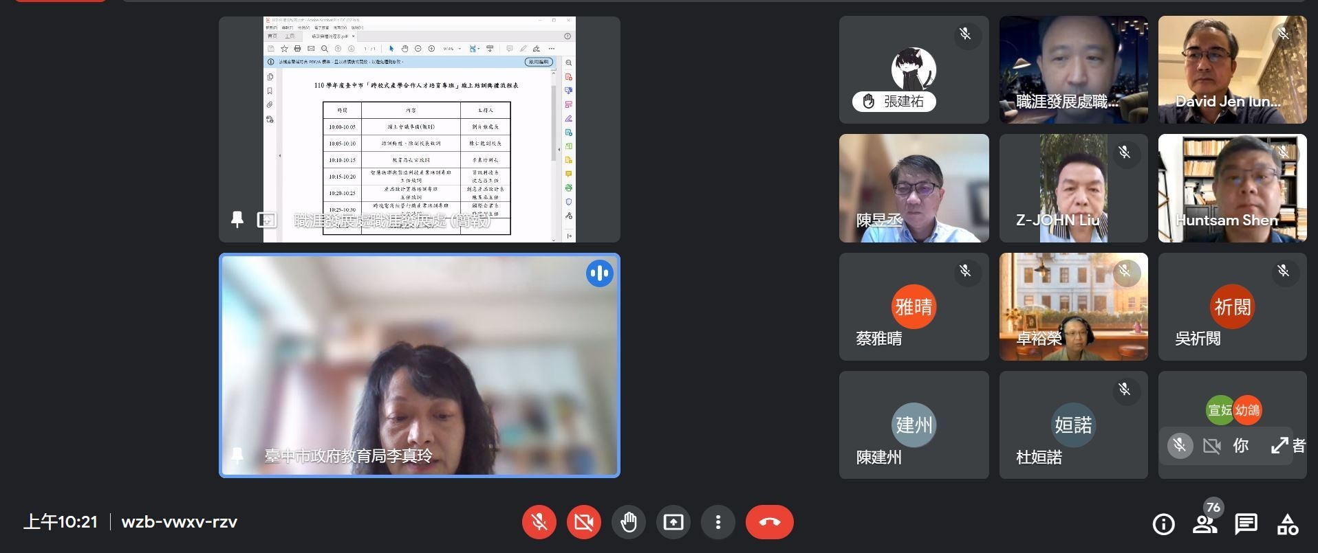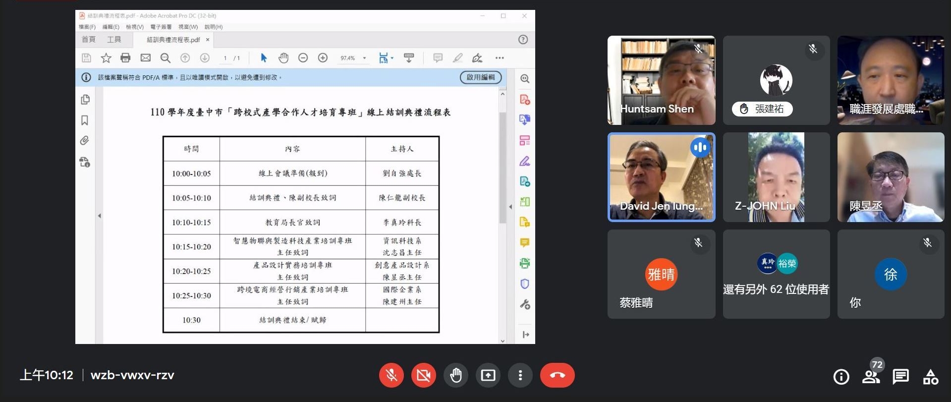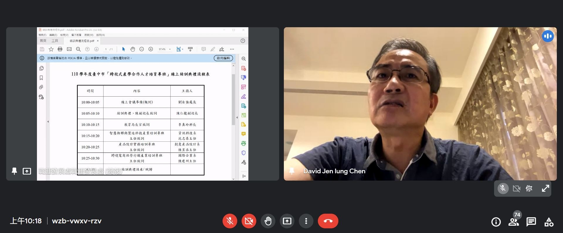 教育局表示,受疫情影響,培訓班每周末採行實體與線上兩種授課方式,紮實的上滿120小時訓練課程,今天上午結訓,採線上方式辦理,參與計畫廠商如惠特科技、車王電子、宏全國際、康淳科技、玉晶光電、群祐機械、振鋒企業及瑞士商弗克司等公司提供超過100個工作職缺供學員選擇,畢業馬上就業。(8/7*12)*教育局