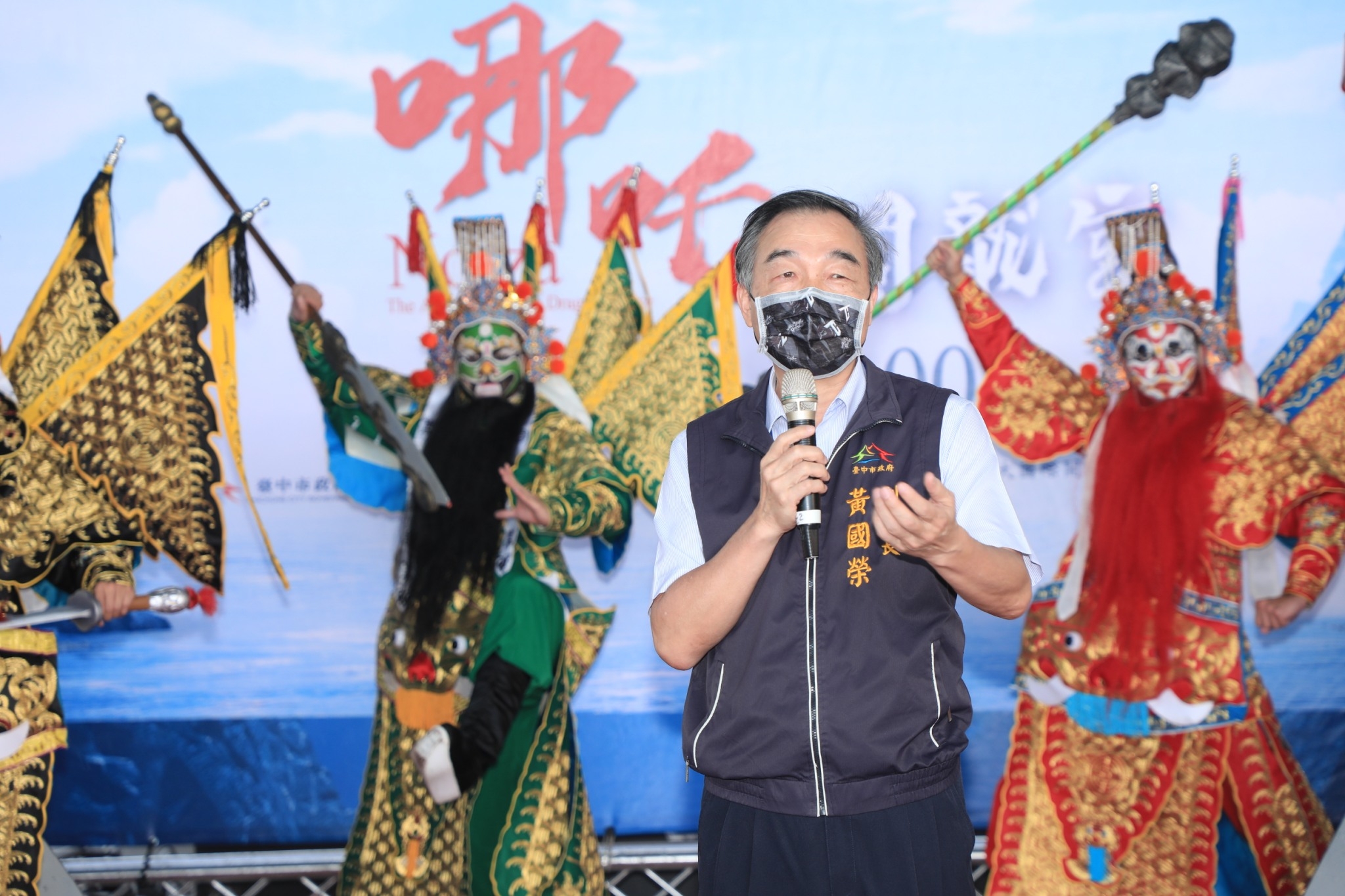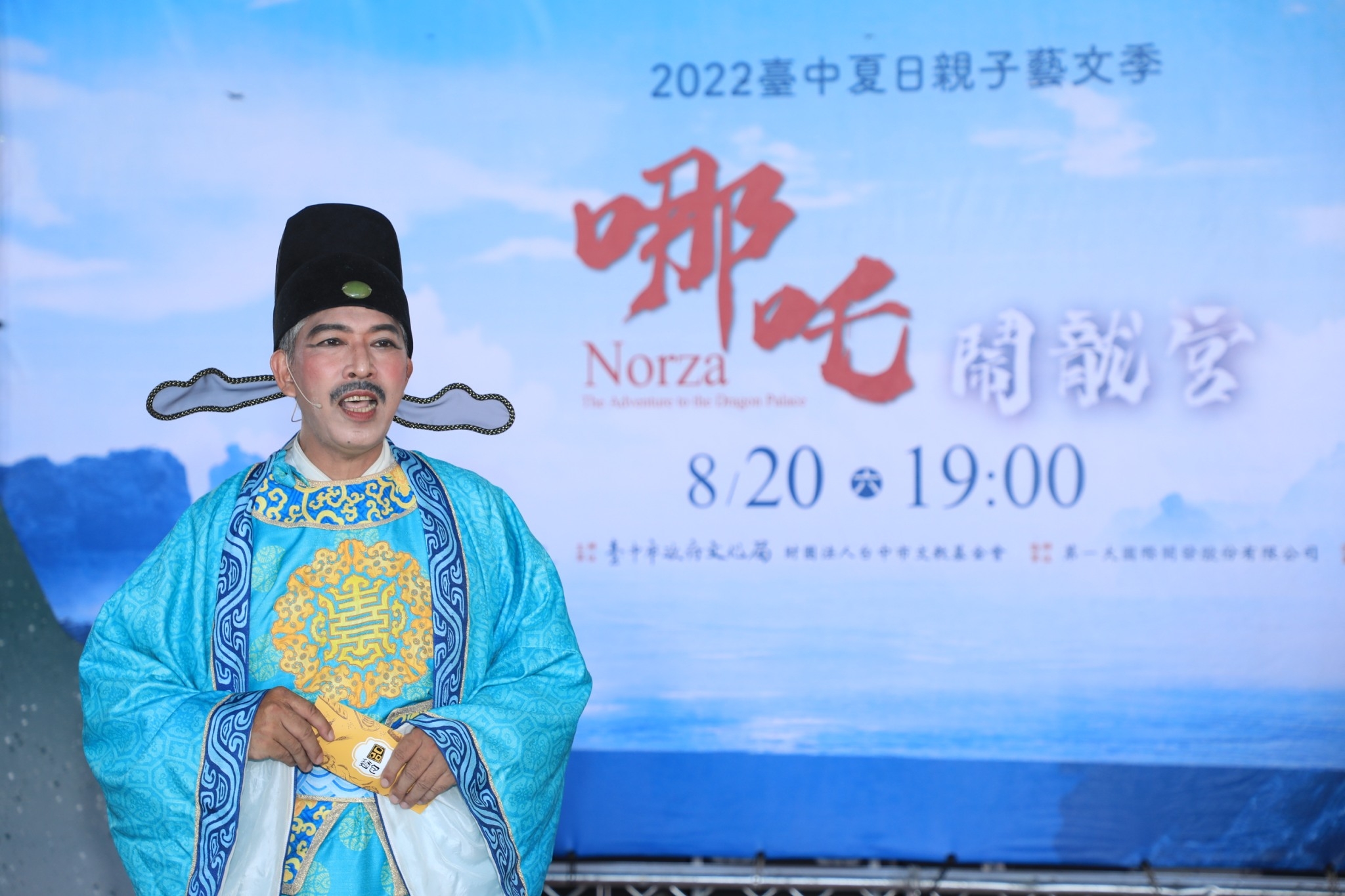 黃副市長指出,非常感謝紙風車劇團將《哪吒鬧龍宮》戶外首演獻給台中,劇團長年深耕台灣各地、致力推廣表演藝術、平衡城鄉藝文差距,包含「319鄉村兒童藝術工程」、「368鄉鎮市區兒童藝術工程」等,對台灣表演藝術有極大貢獻。他也預告,市府會持續邀請優秀藝文團隊到山海屯城29個行政區演出,打造充滿文化氛圍的幸福城巿。