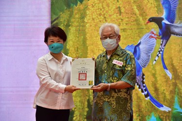 文化局也說,今年參展藝術家中,最年長的是版畫類楊允模老師高齡94歲,他特別提供〈虎視眈眈〉版畫作品展出,呼應台中市藝術家虎虎生風;同樣以生肖虎為創作主題,又是24年全勤參展的工藝類陳春明老師作品〈虎你歡喜〉,以竹頭雕刻可愛又童趣的小老虎,令人心生歡喜;連續參展24年、年逾80歲的雕塑類陳金典老師,每年都提供最新作品參展,這次展出石雕作品〈親情〉高65公分、超過150公斤,刻劃貓頭鷹家族爸爸穩穩撐持,媽媽雙手環繞二個小孩站在爸爸肩上,象徵著藝術薪火相傳;今年88歲的膠彩類藝術家趙宗冠老師也是年年以全新作品展出。
