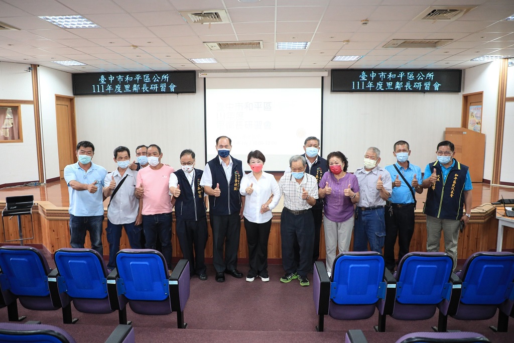 台中市和平區公所今(19)日舉辦「111年度里鄰長研習會」,邀請市府衛生局、地稅局及警察局進行專業講習,充實里鄰長服務職能,協助公所順利推行地方自治業務。市長盧秀燕出席關心,感謝里鄰長疫情期間全力支持及協助居家檢疫關懷及疫苗施打任務,讓市民感受市府的用心,齊力建構安全防疫網,她也會帶領市府團隊認真服務、持續建設,營造更優質、友善的幸福城市。