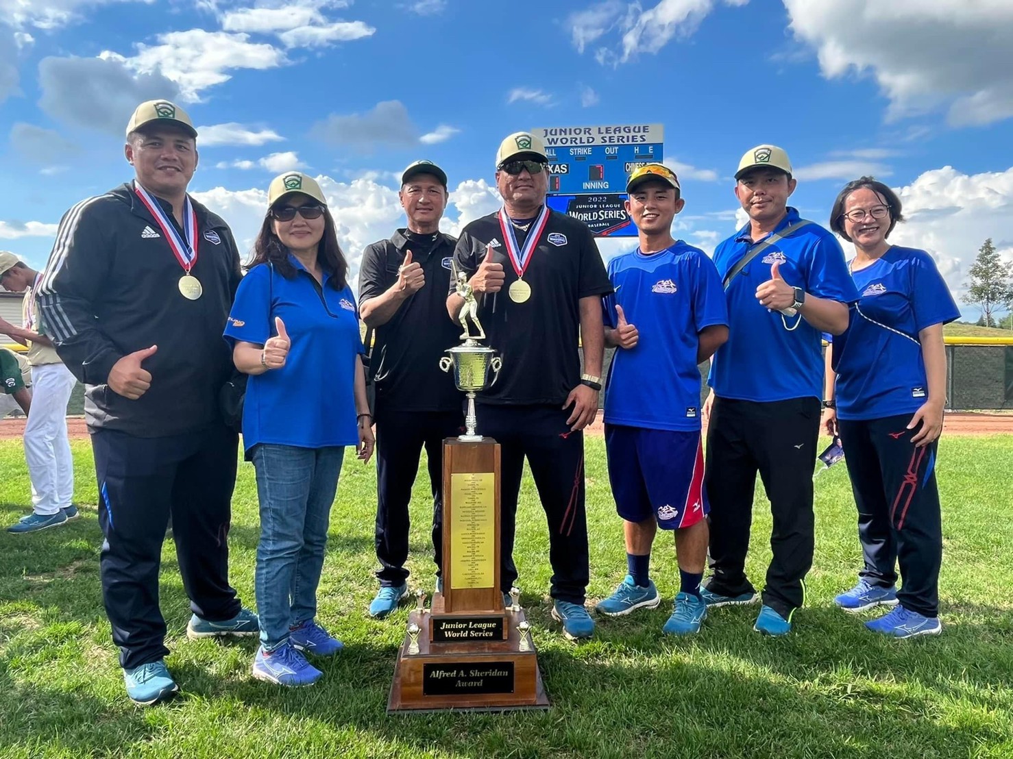 總教練藍文權表示,此屆比賽,選手都表現不錯,每位球員都有充分發揮,才能完成奪冠目標;世界少棒聯盟(LLB)次青少棒錦標賽自1981年舉辦,台灣從2010年開始參賽,2014、2015年台中市中山國中代表台灣參賽,連續2屆獲得世界冠軍,2022年受疫情影響,從開始集訓、出國比賽最終拿到冠軍,大家1個多月沒有回家,都很辛苦,很開心有好的結果。