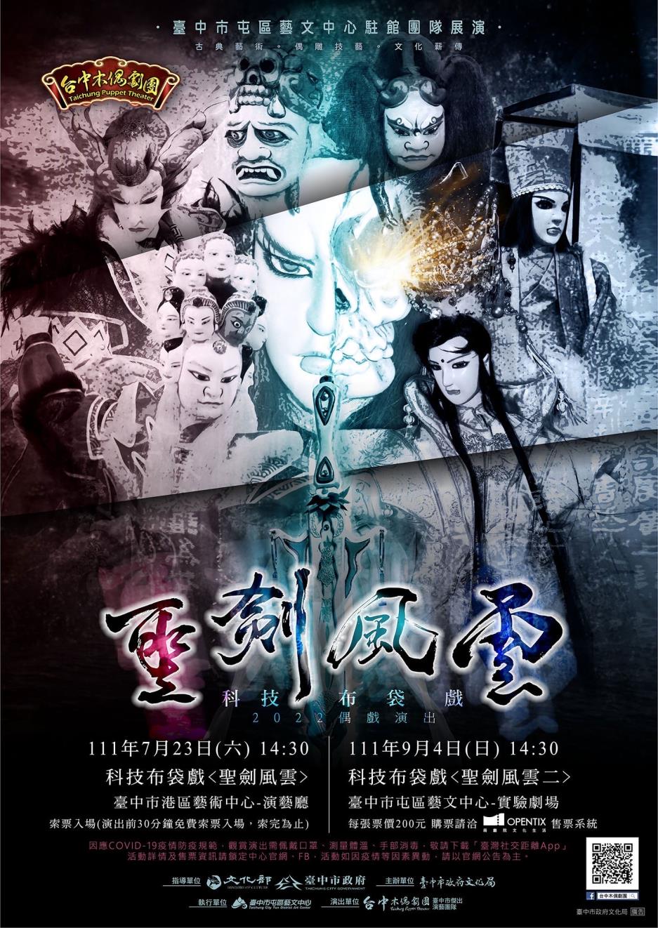 文化局指出,科技布袋戲《聖劍風雲》第一集於去年首次推出,佳評如潮,9月4日將於屯藝中心實驗劇場推出《聖劍風雲》第二集售票演出,售票資訊請鎖定中心官網(https://reurl.cc/5pM6vR ),或OPENTIX售票系統(https://reurl.cc/ZAdM3A )。此外,開演前團長將進行30分鐘導聆,包含前情提要、分享傳統偶戲結合科技製作的困難與突破、說明如何觀賞新戲、帶領觀眾窺探神秘的偶戲後台等,喜歡偶戲的觀眾千萬不要錯過!