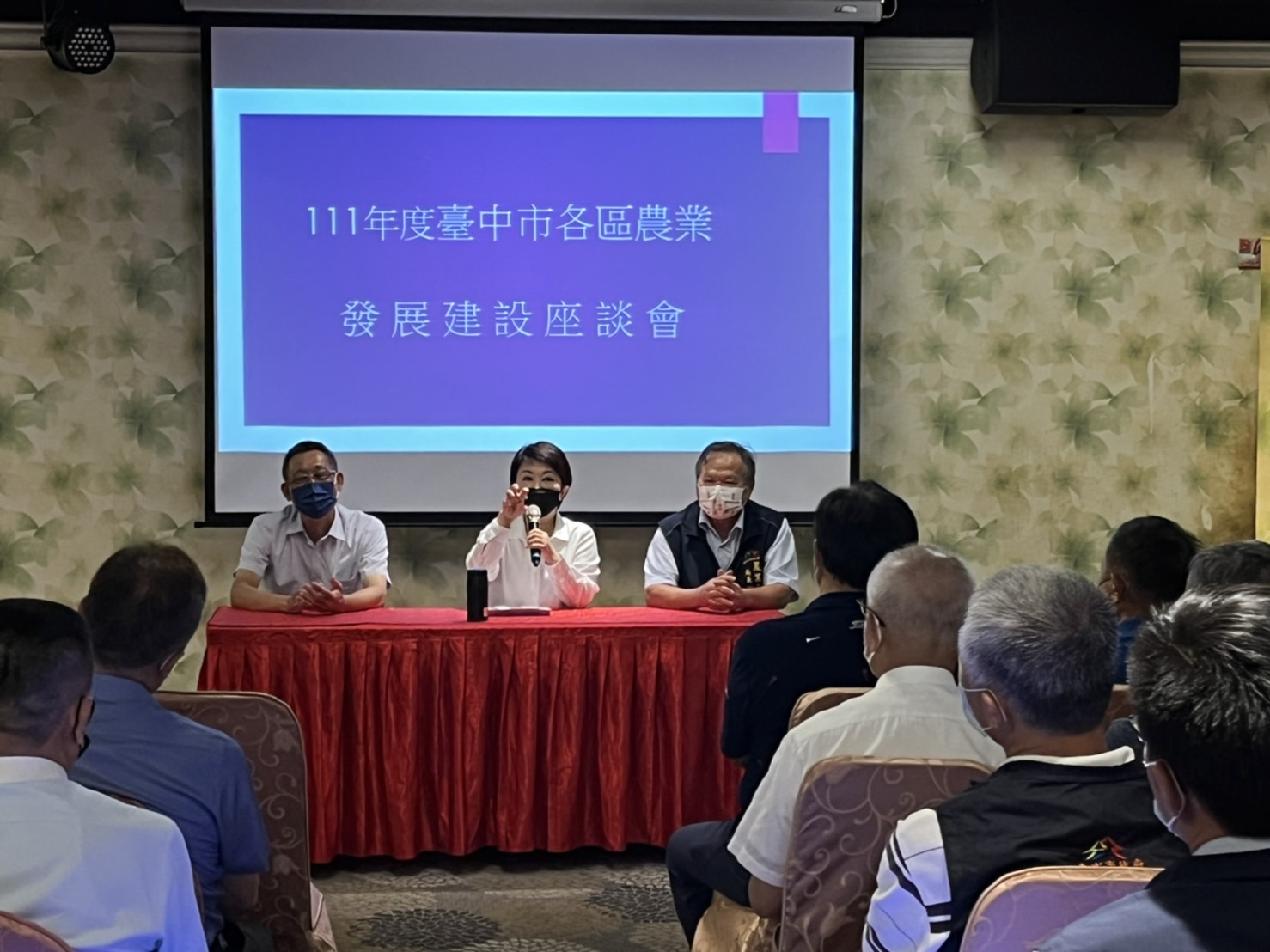 因應疫情及中國大陸限制進口等危機,台中市政府農業局今(23)日與各區農會總幹事舉行111年度台中市各區農業發展建設座談會,市長盧秀燕主持表示,市府會努力聽取各方意見,穩定農業及糧食供應,加強推展產銷通路,與大家共同面對挑戰,也感謝農會及市場等團體組織作為市府的好夥伴,讓農業政策持續順利推動。