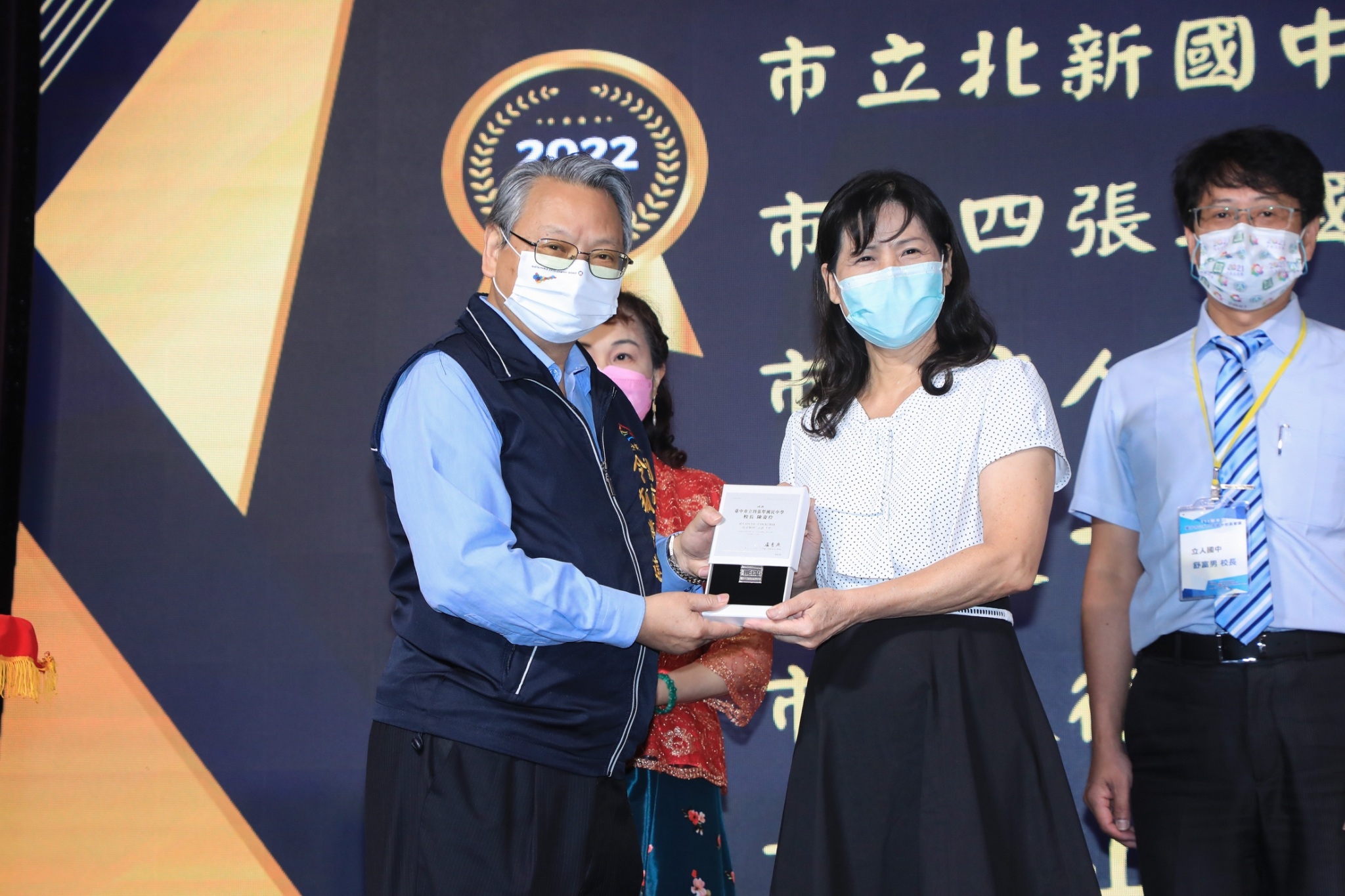 盧市長說,感謝校長及老師們在疫情期間的付出,保護學生健康也兼顧受教權,共同守護校園社區環境,抗疫工作持續進行,市府與學校一起努力。另副市長令狐榮達也在會中頒發防疫英雄勳章,感謝疫情期間協助施打疫苗的有功教育人員。