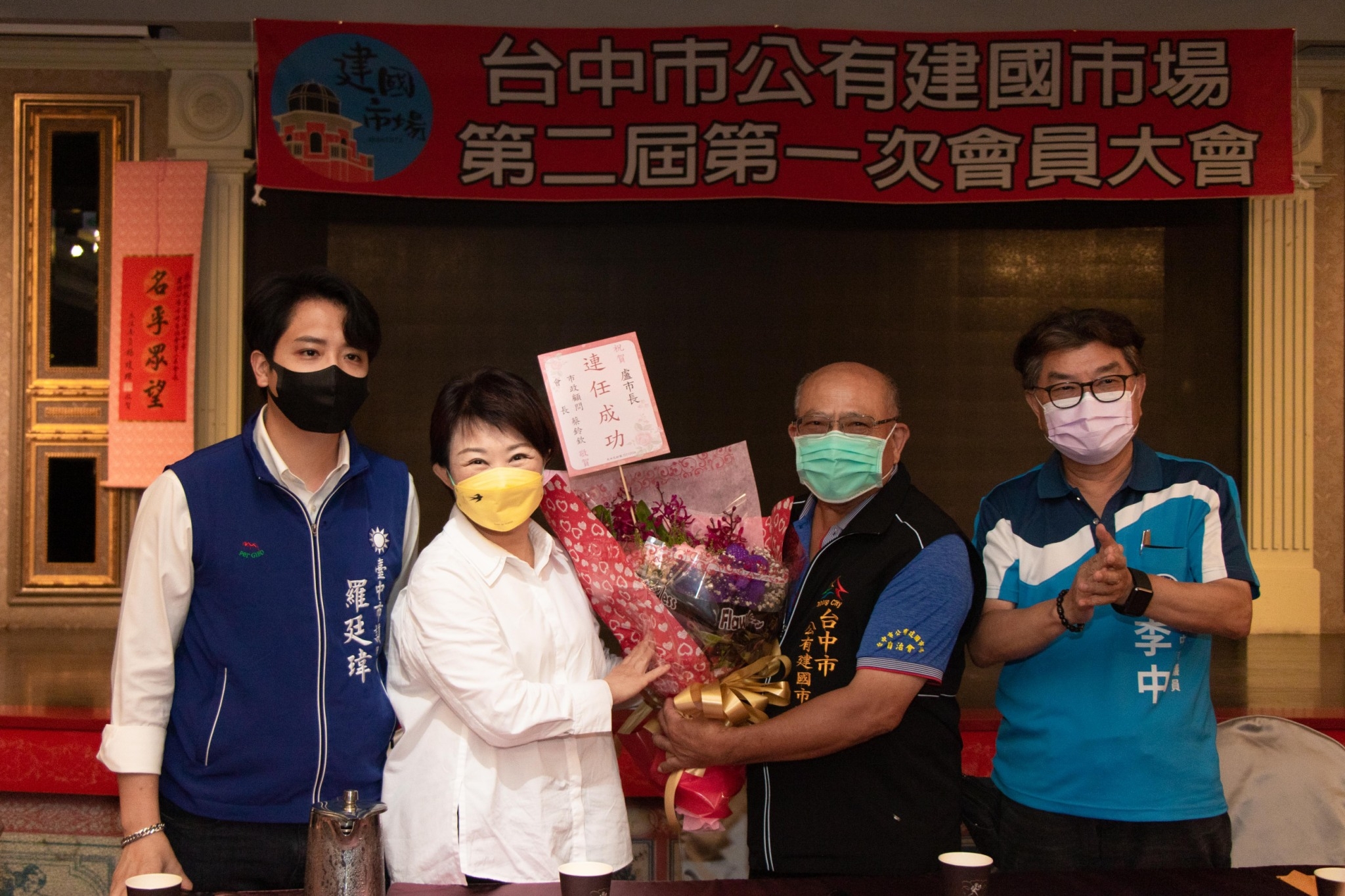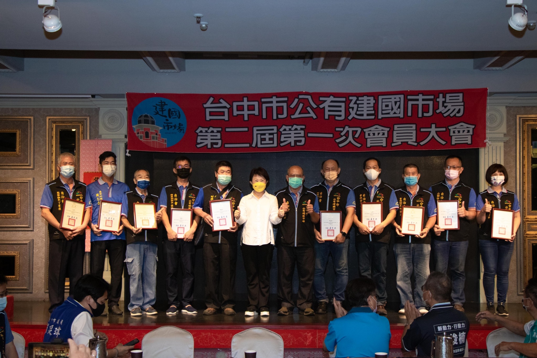 建國市場自治會自105年9月20日搬遷至建成路新址,今(29)日舉辦遷至新址的第2屆會員大會,市長盧秀燕親自出席恭喜並頒發自治會幹部當選證書,也感謝會長兼市政顧問的蔡鈴欽積極爭取預算,改善軟硬體設施,帶領各攤商齊心努力,提供民眾優質友善的購物環境,為建國市場創造更多商機。