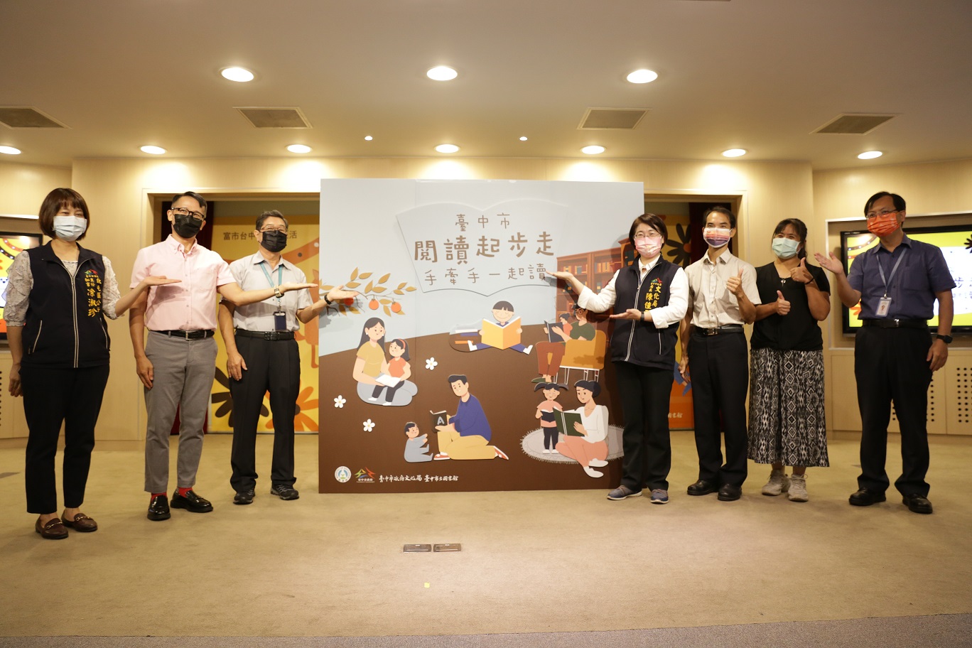 「2022台中市閱讀起步走」活動開跑!台中市政府文化局今(1)日舉辦啟動記者會,即日起至10月底,台中市圖45個圖書館將同步以「手牽手一起讀」為主題,辦理百場以上閱讀推廣活動,並針對家中有0至5歲幼兒的親子家庭發送1萬2千個閱讀禮袋,透過實體與線上方式,與家長分享育兒成長及親子共讀妙招,歡迎家長和小朋友一起享受快樂的親子閱讀時光。