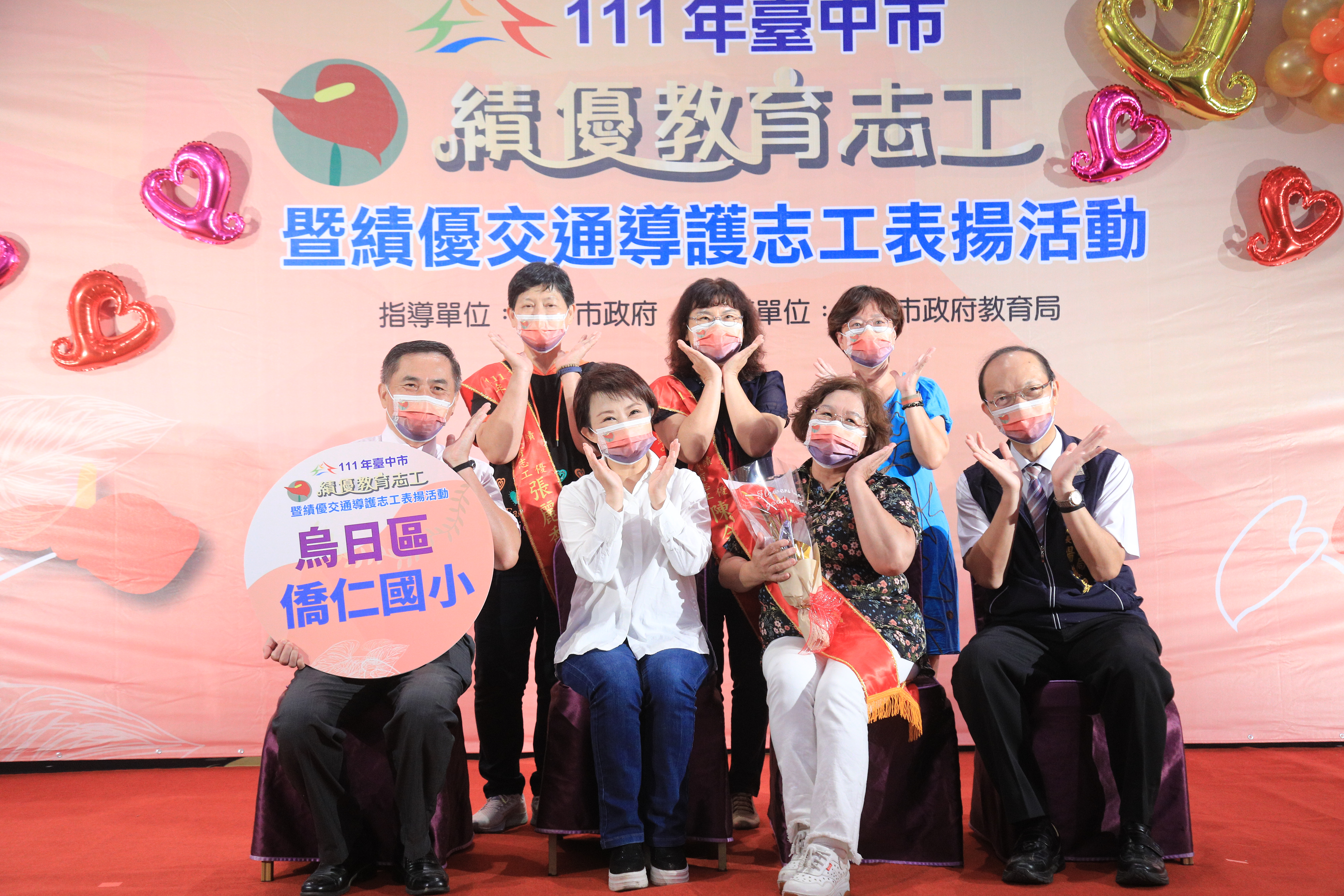 台中市111年績優志願服務團隊及志願服務選拔,今(1)日獲得表揚的志工團隊中,有3隊代表教育局參加,在全市47個團隊競爭中脫穎而出,3隊全數獲獎,居全市之冠,包括宜欣國小愛心志工隊、新平國小教育志工隊、烏日國小愛心志工隊。市長盧秀燕今日持續出席第3場績優教育志工暨績優交通導護志工表揚,會中感謝各校志工們的無私奉獻。