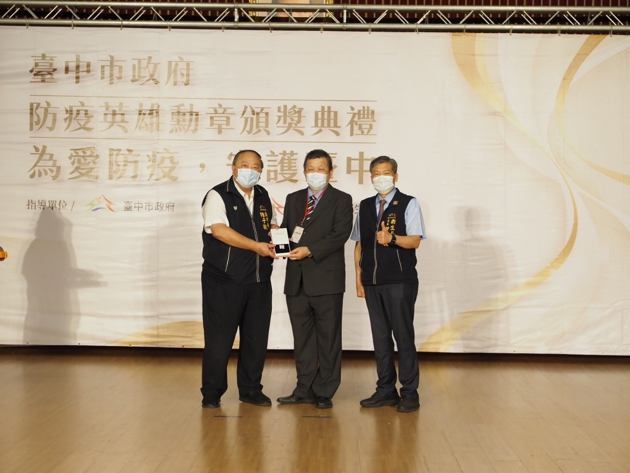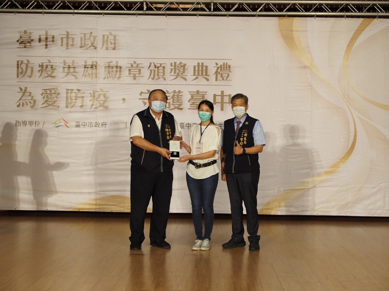 衛生局表示,為感謝及表彰投入防疫事務的防疫英雄們,市府特訂定「台中市政府因應嚴重特殊傳染性肺炎(COVID-19)防疫英雄表揚計畫」。繼今年8月25日由盧市長出席感謝並頒發防疫英雄勳章予防疫貢獻有功的醫療院所及公協會、捐款及捐贈物資之民間團體、個人及公務同仁後,今日的頒獎典禮由陳副市長頒授表揚防疫英雄勳章予疫情期間與衛生、醫藥、食品相關領域的城市英雄、醫療院所及公協會、捐款與捐贈防疫與相關物資卓有貢獻之民間團體及個人、衛生局及所屬機關公務同仁等,總共377人(組)。