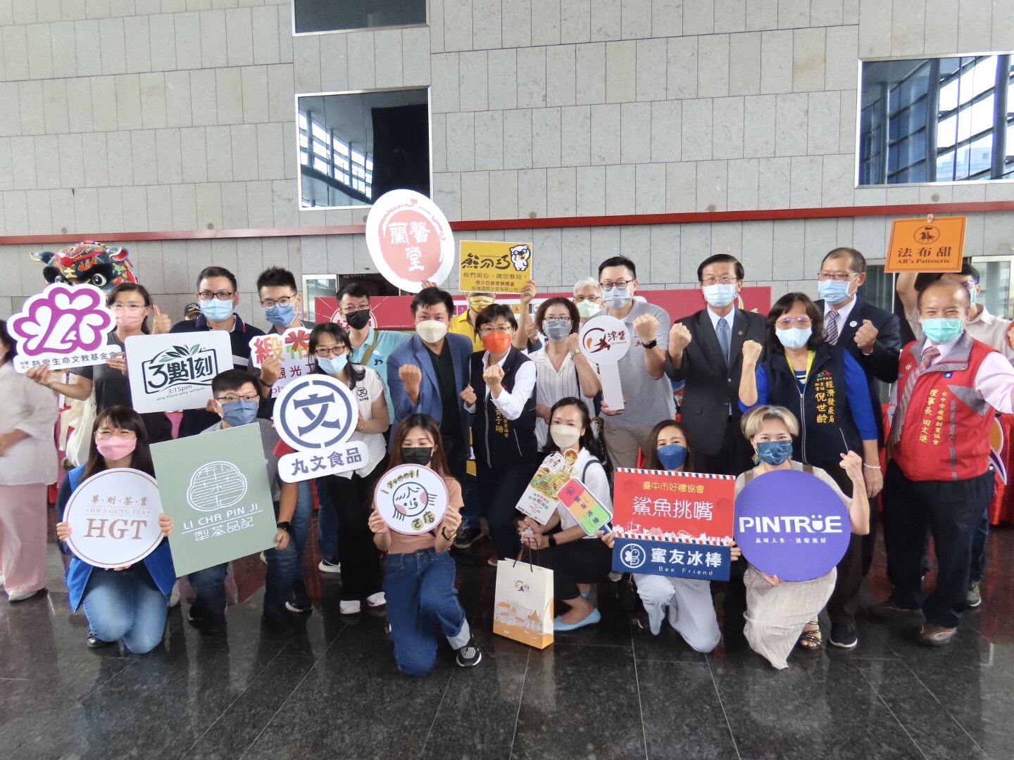 今日記者會,工策會總幹事黃于珊、經發局主秘倪世齡、中華民國糕餅商業同業公會全國聯合會理事長周子良、中華民國觀光工廠促進協會理事長許立昇、台中市商業會副理事長楊澄源、台中市糕餅商業同業公會理事長蔡萬財、台中市好禮協會理事長鄭人豪、台中市飛雁協會理事長田文進、台中市冰果飲品商業同業公會副總幹事林奕緯、愛之光教育基金會執行長顏平芳、台中市榮譽指導員協會會長曹月夏皆出席,市議員羅廷瑋、黃馨慧也派代表共襄盛舉。(9/12*8)*工策會