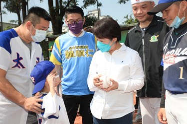 今日比賽現場,許多球員們紛紛請盧市長為他們的球棒、棒球簽名加持,她也祝福所有人都能揮出漂亮的全壘打。盧市長提到,慢速壘球是台中市持續推廣「酷運動、酷城市、酷台中」項目之一,要支持、要推廣。
