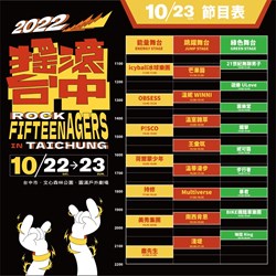 新聞局說明,「搖滾台中」今年適逢15週年,以「青少年」為主題,前2年受疫情影響只能以線上方式舉辦,今年睽違已久再次舉行實體活動,重回文心森林公園暨圓滿戶外劇場,讓這次活動更具意義。此次除有樂團演出之外,也特別與邊緣人市集合作特色主題「青春,逗」市集,配合即將邁入15歲的搖滾台中,以「Fifteenagers」為主題,號召忠實搖滾迷或今年第一次到搖滾台中的朋友們,一同喚醒衝動,拾回熱情!