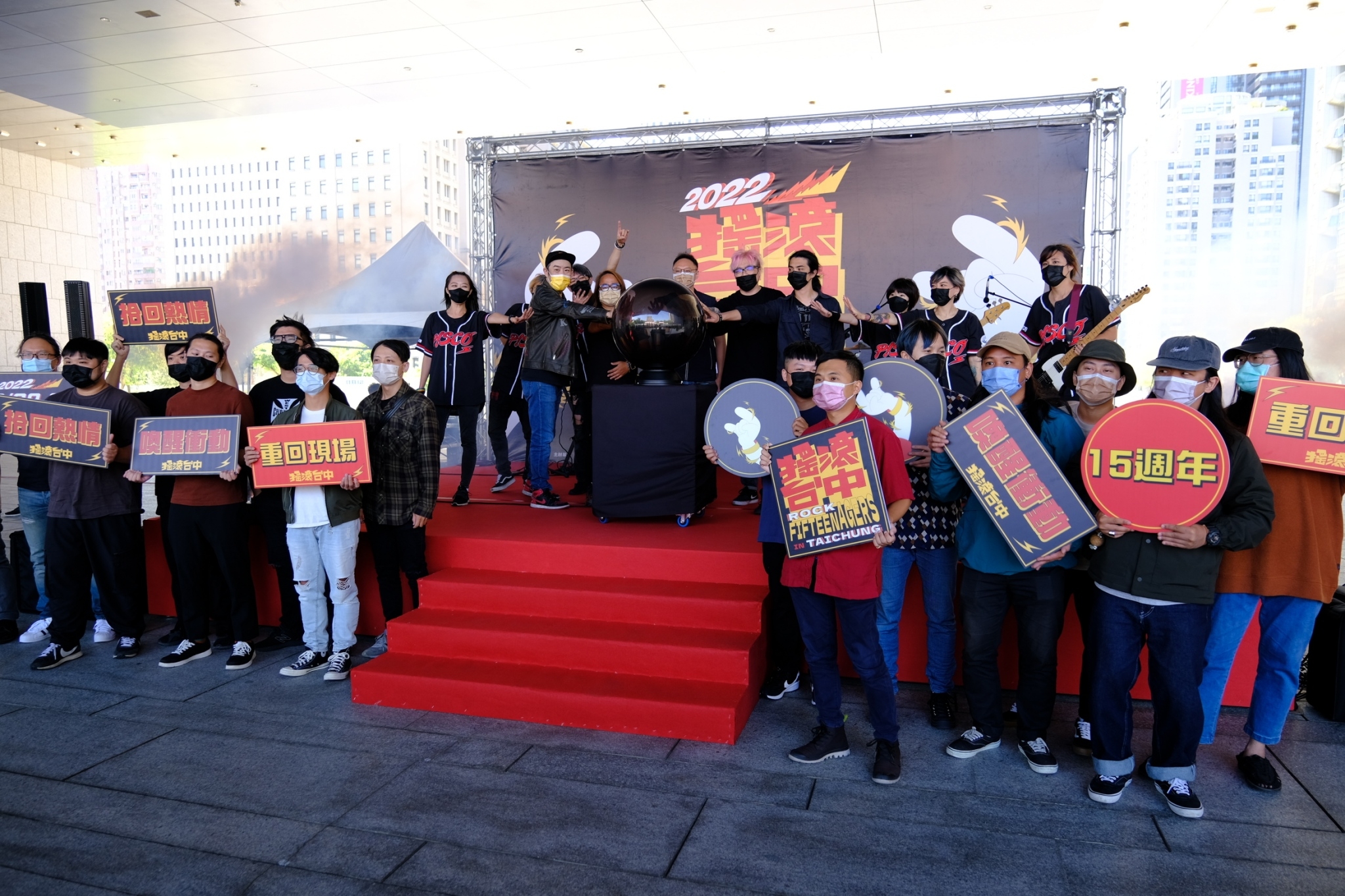 台中市政府新聞局今(13)日於台灣大道市政大樓1樓中央川堂舉辦「2022搖滾台中」開跑記者會,除邀請在「搖滾台中」演出超過10屆的在地樂團「BIKE機踏車」及知名樂團「P!SCO」輪番獻唱,也邀請到地下歲月、固定客、適者生存、溫室雜草、震樂堂、狗吠火車、倒抽一口氣、兩棲人、老破麻、碎紙花、步行者、牛奶罐、主音樂團、最後一擊、異族亡魂等超過15組台中在地樂團齊聚現場,與新聞局長鄭照新、搖滾台中計畫統籌老諾一同點亮水晶球,宣布搖滾台中重返實體活動!