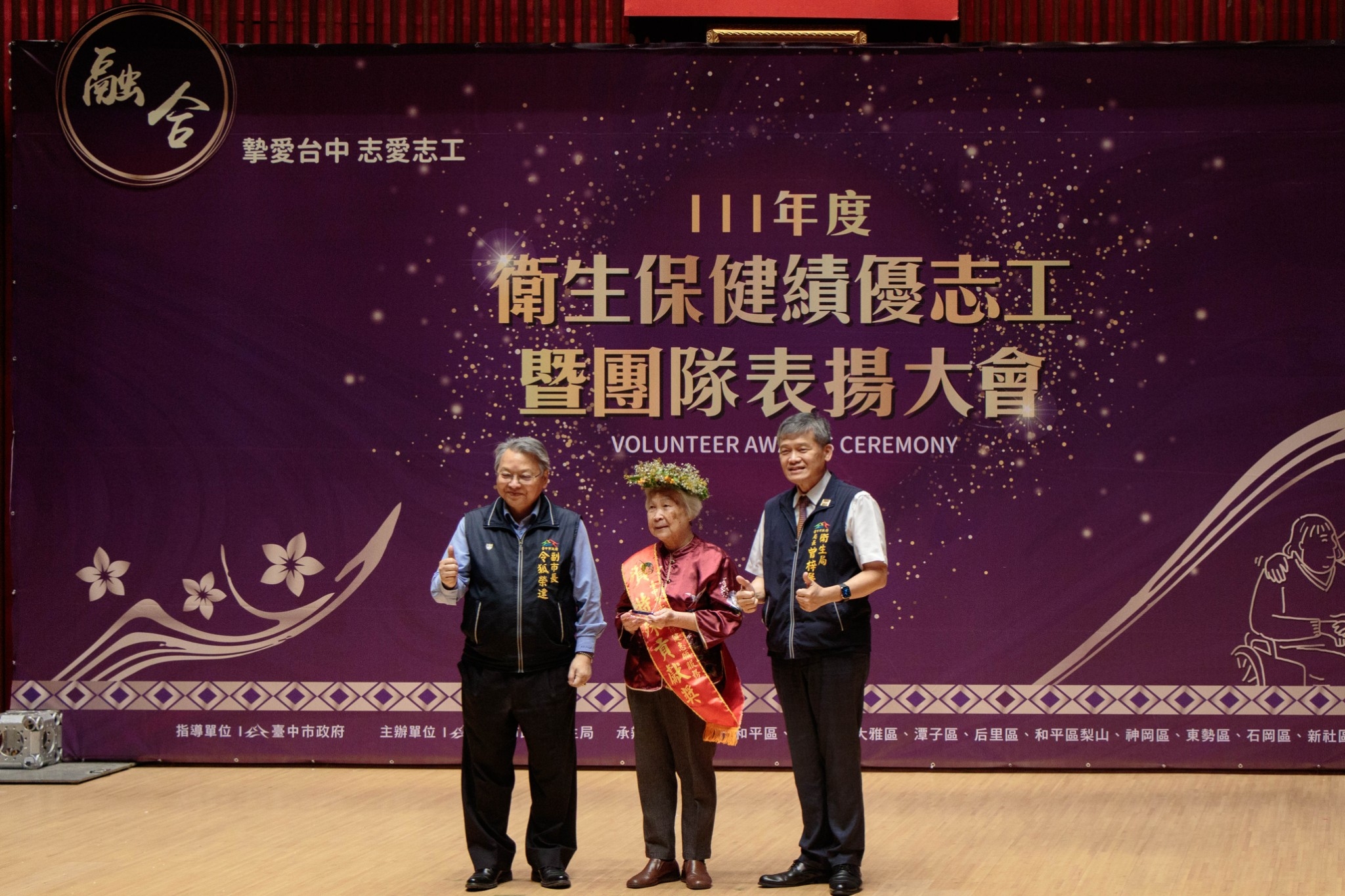 衛生局長曾梓展說明,疫情嚴峻時期,來自各路英雄好漢的志工朋友,不分彼此,不畏染疫風險,一起挺身而出,協助醫護人員扛起防疫重責,著實令人感佩。今年度表揚活動以「融合 摯愛台中 志愛志工」為主題,頒獎會場特別設置志工服務身影的拍照背板,紅地毯兩側也陳列每位得獎志工的優良服務事蹟與身影,榮耀得獎志工與家人及志工團隊夥伴。