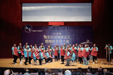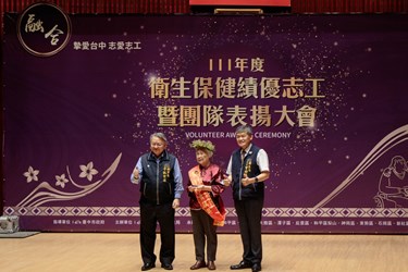 令狐副市長說明,台中市有87個衛生保健志工隊,志工人數逾6千人,今天共有89位志工受表揚,其中特殊貢獻獎得主朱菊蘭志工已擔任志工19年,服務時間超過1萬小時,令人敬佩;另還有松馨獎15名,服務年資滿5年,時數達1000小時以上;梅馨獎26名,服務年資3年以上,時數達600小時以上;蘭馨獎47名,服務滿1年,時數達300小時以上,長期參與志工非常不容易。