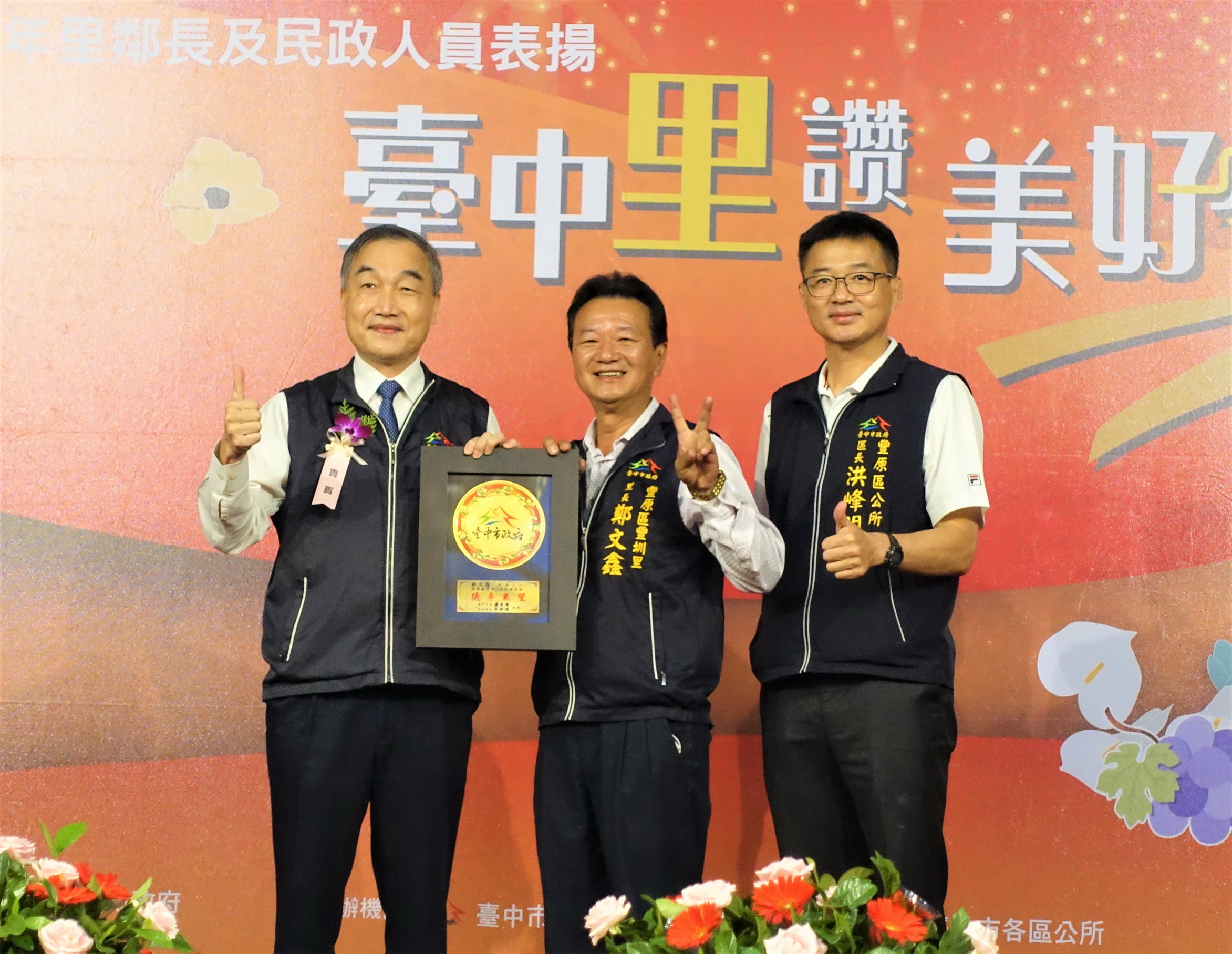 黃副市長指出,今年山線地區有15名里長獲頒特優里長,推動里內公共事務及各項建設不遺餘力,並主動關懷弱勢家庭、協助里民申請各項生活津貼等,全力提升里民生活品質,深受里民肯定。其中,豐原區豐圳里長鄭文鑫連續服務年資逾27年、另東勢區新盛里長吳進聰服務年資近20年,2人長年用心服務地方、為增進里民福祉奔走,深獲里民信賴,感謝里長的奉獻精神及辛勞付出。