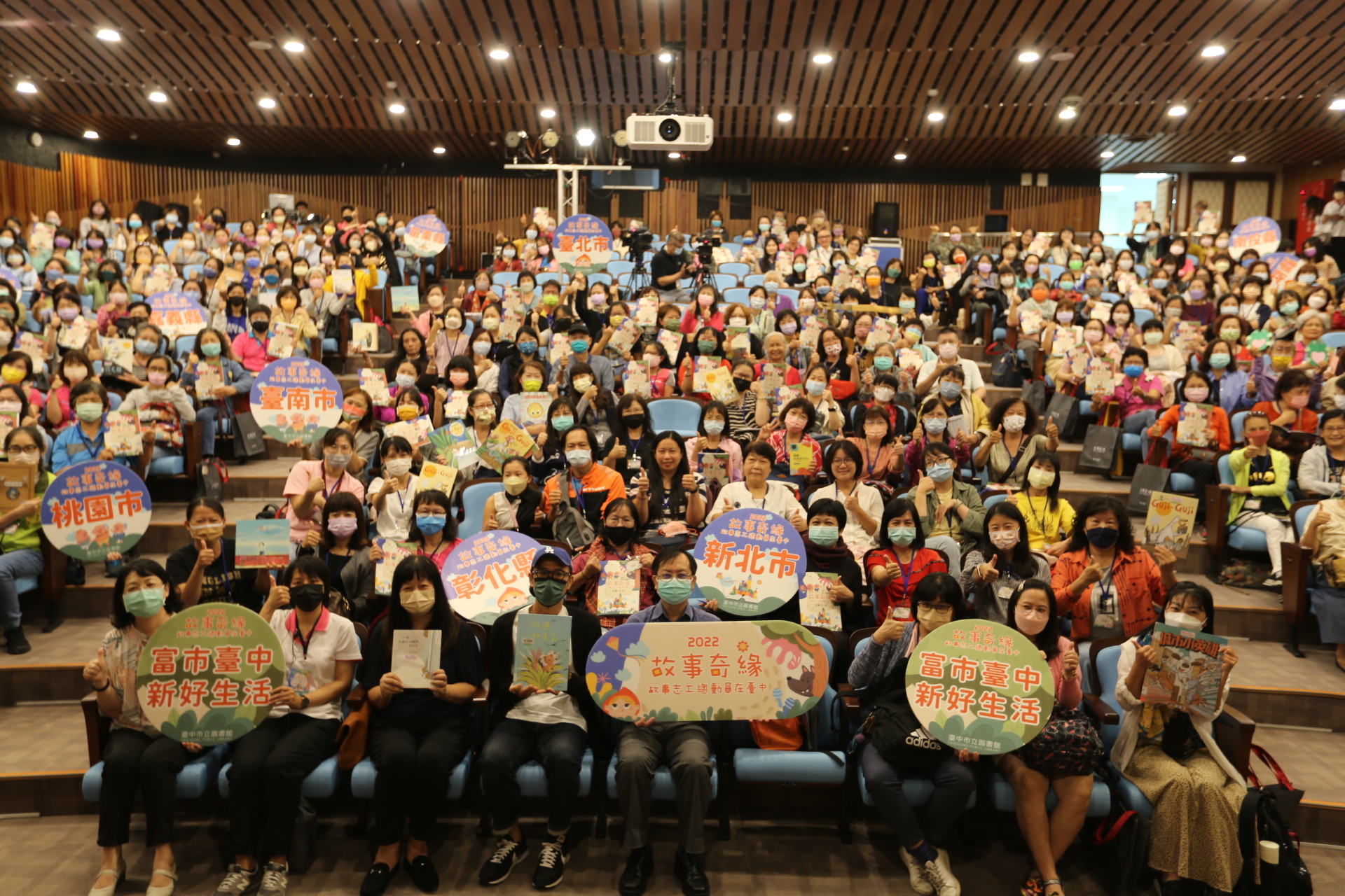 2022「全國故事志工總動員」活動今(14)日在台中市立圖書館熱鬧登場,今年活動以「故事奇緣」為主題,邀請知名繪本作家陳致元、故事工廠劇場演員群及桃園、宜蘭、台中優秀的故事志工劇團,齊聚交流,為來自全台各地300位熱情的故事志工蓄積能量,繼續用故事帶給讀者溫暖和歡樂。