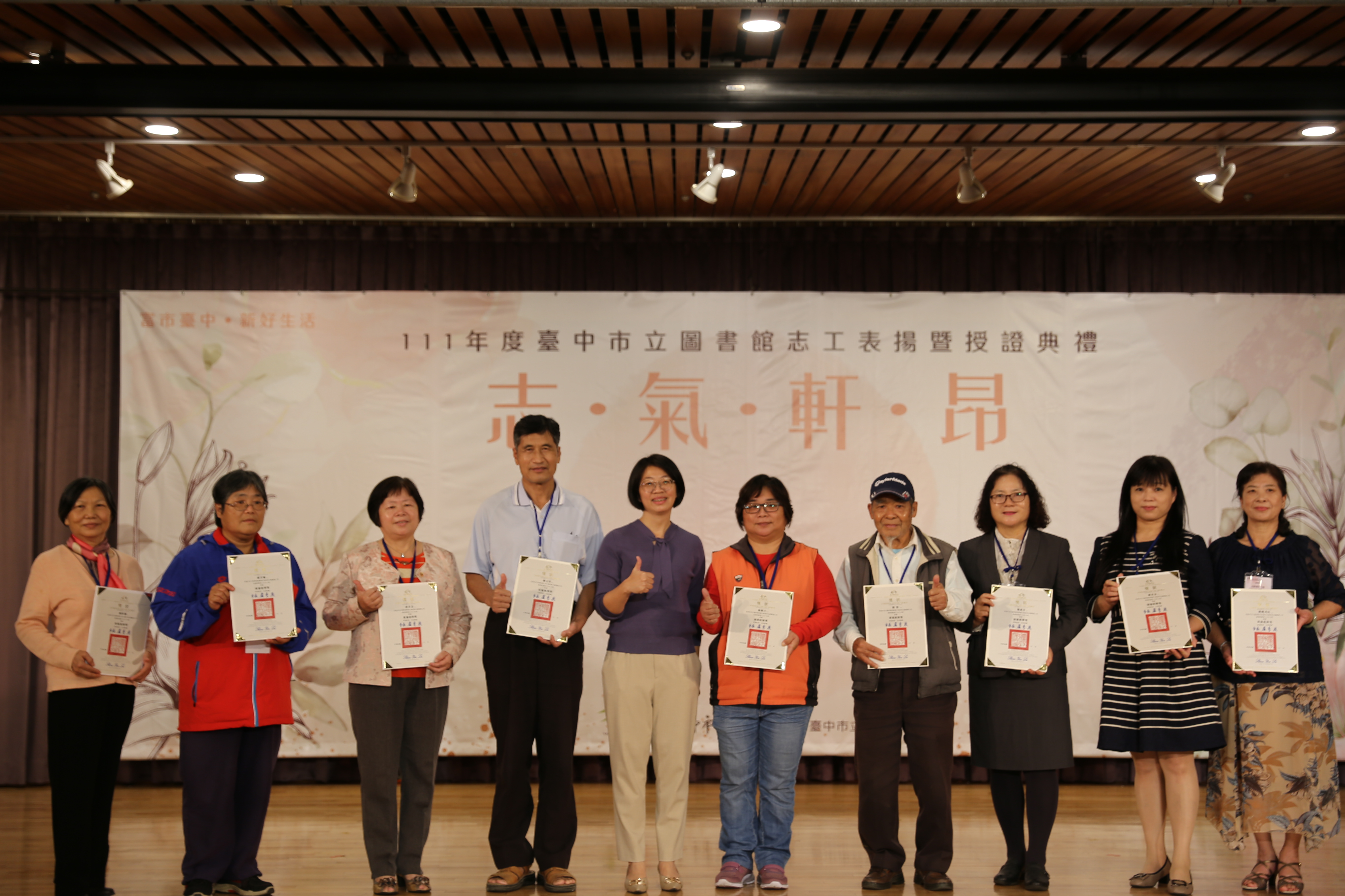中市圖111年志工表揚暨授證典禮大合照