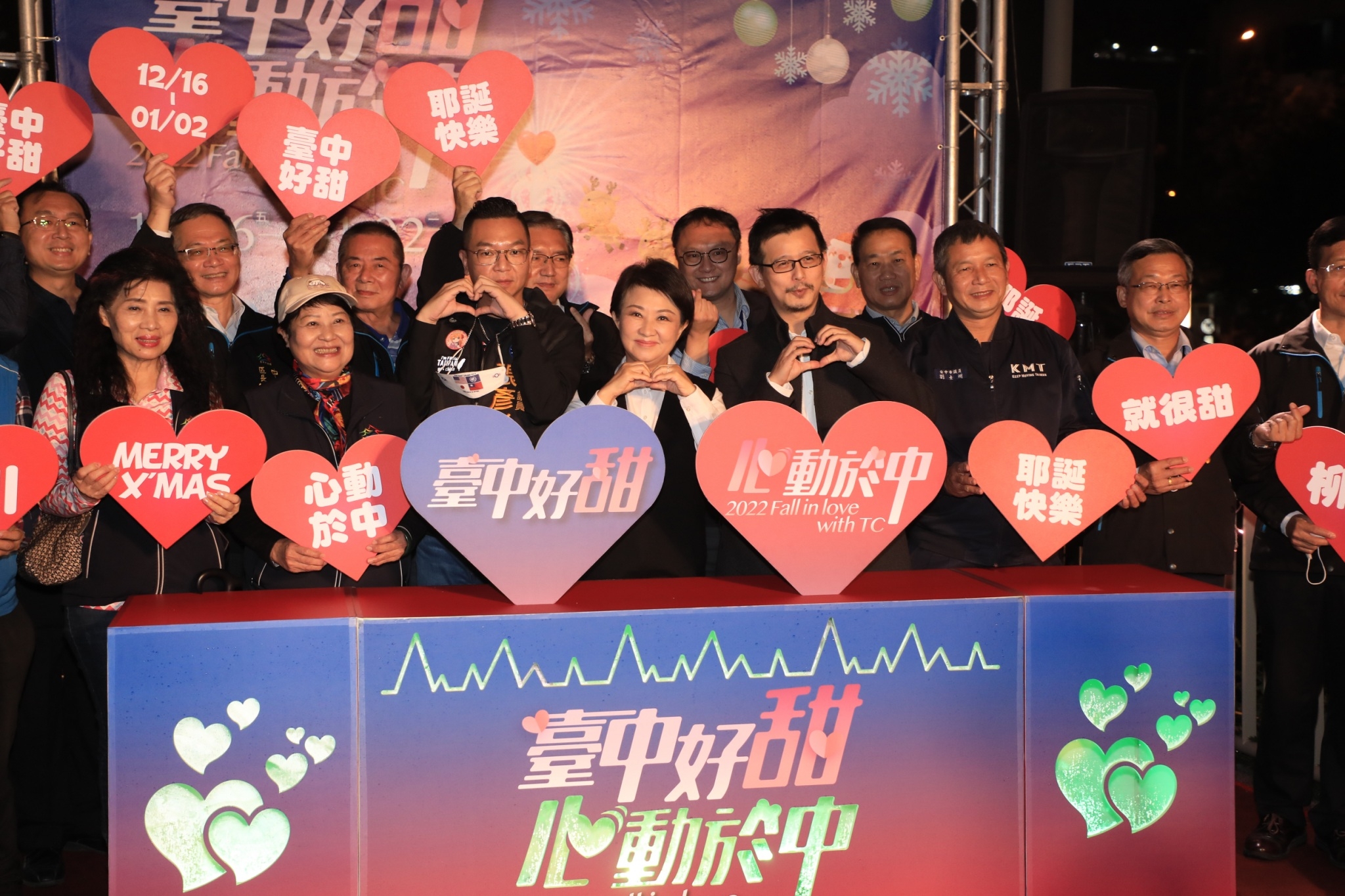 盧市長說,今年耶誕點燈主題訂為「台中好甜 心動於中」,剛好疫情過後,中區有許多美食,她剛才一路看到大麵羹、米粉湯、四神湯等,都是她從小吃到大的舊城區好滋味,台中不但有百年甜品店「食物好甜」、城市景觀好看「市容好甜」、更有民眾和善「市民好甜」。