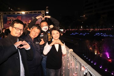 「三個展區、一次集滿!」盧市長也說,台中耶誕嘉年華年年舉辦,因此她要與市民分享遊玩心法,展區包含柳川、綠川和火車站前廣場,推薦民眾一定要三區都去,才能構成整體意象;去年台中的珍珠奶茶主燈全國僅有,吸引許多民眾前往朝聖,今年的火車站前高達15公尺的「心花朵朵」,加上更加盛大的柳川水舞,以及綠川適合新年度許願燈區,祝福大家心想事成、心花朵朵開。